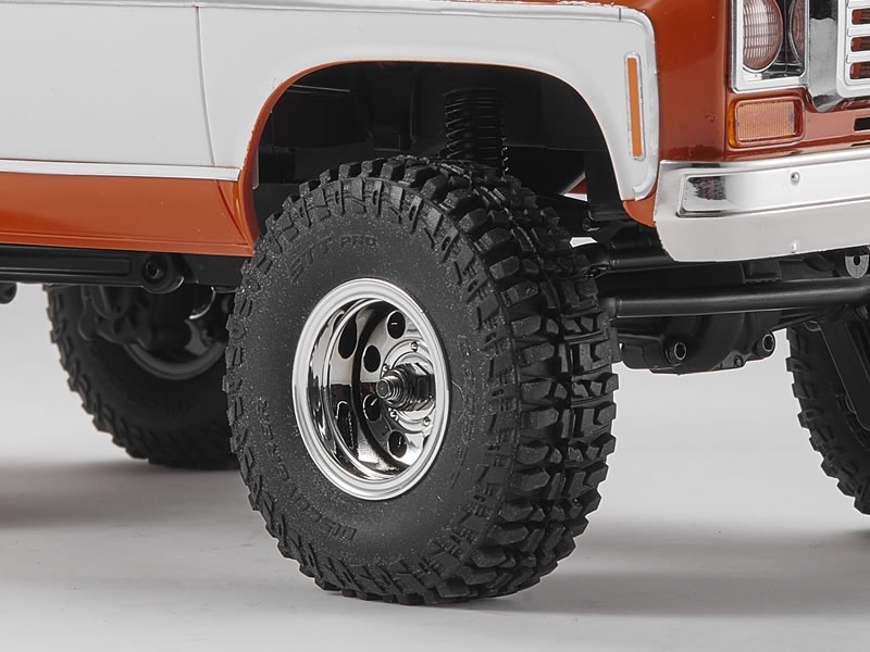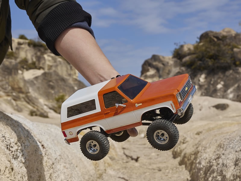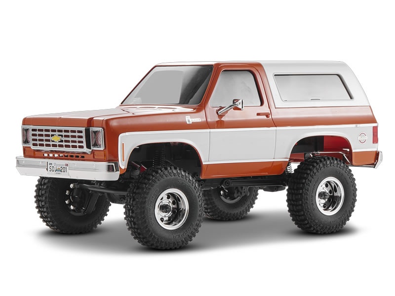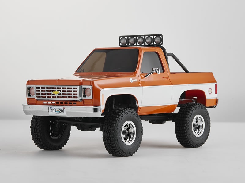 Der offiziell lizensierte Chevrolet K5 Blazer ist ein RC-Scaler im Maßstab 1:24 mit 2-Gang-Getriebe und basiert auf dem FCX24 Chassis. Der K5 kommt mit seinem 2-Gang-Getriebe komplett fahrfertig aus der Box – inklusive Akku und Fernsteuerung.