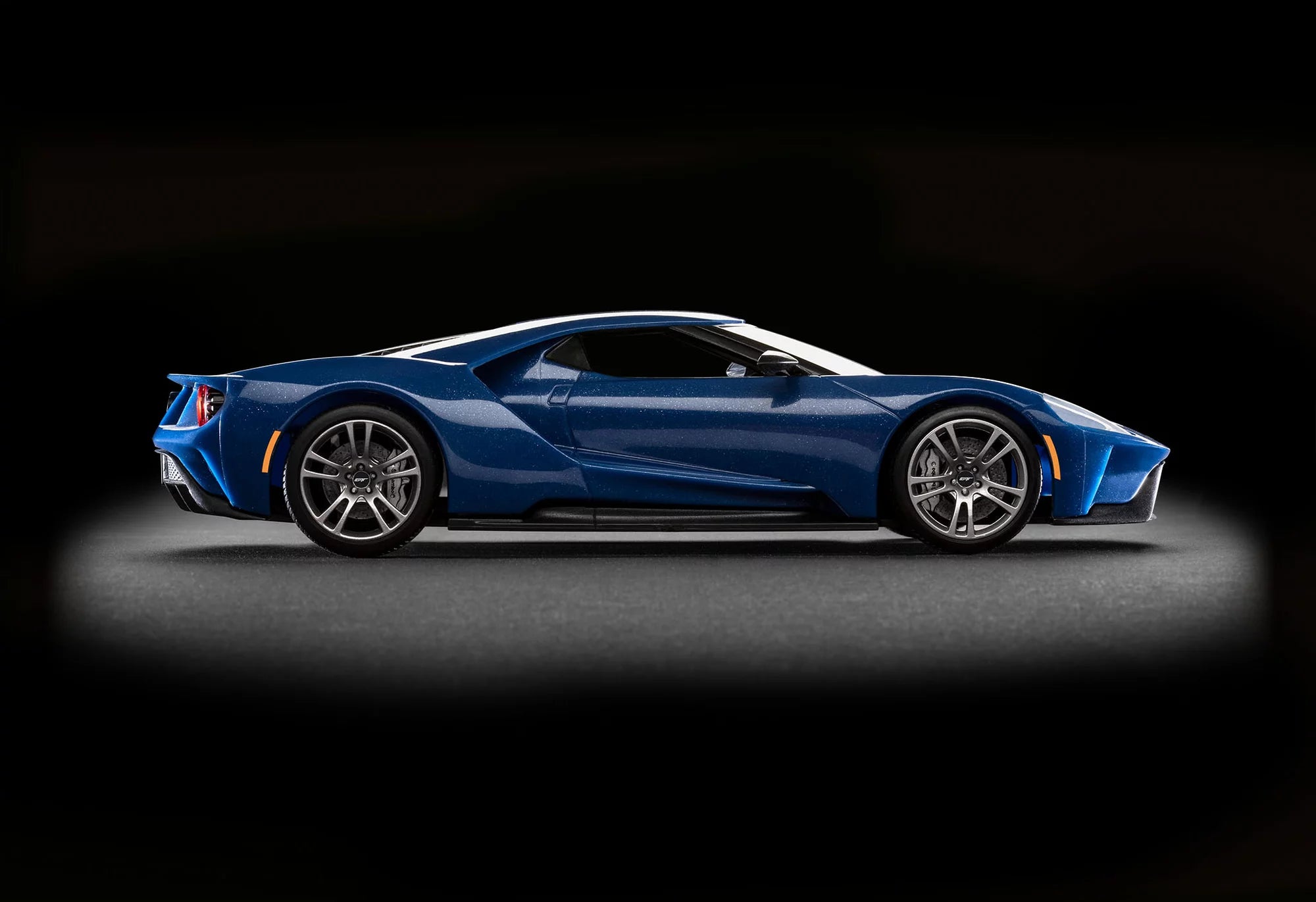 Eines der Hauptmerkmale des 2017 Ford GT ist sein futuristisches Design. Das Auto hat eine langgestreckte, niedrige Silhouette und eine breite Spur, die für Stabilität und Kontrolle sorgt. Die Karosserie des GT besteht aus Karbonfaser und Aluminium, was ihm ein geringes Gewicht und eine hohe Steifigkeit verleiht. Zudem verfügt das Auto über ein aktives Flügelsystem, das sich je nach Geschwindigkeit und Fahrbedingungen anpasst und den Luftwiderstand reduziert.