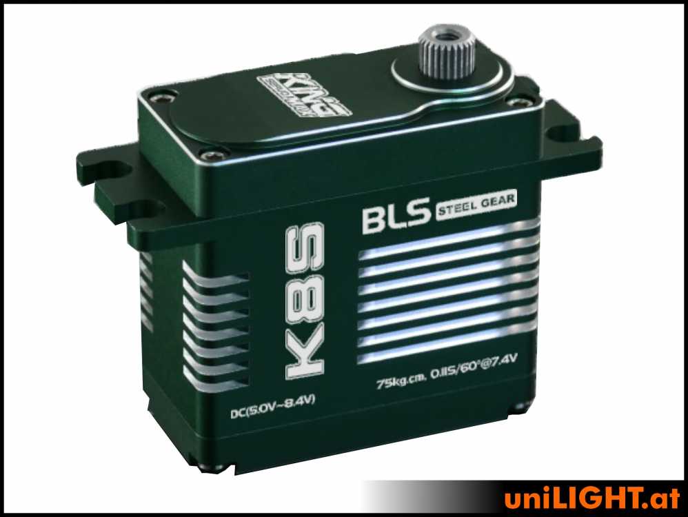 Das 20mm Super Servo K8S ist ein High-End Brushless-Servo für anspruchsvollste Anwendungen. Mit einem nahezu unzerstörbaren Metallgetriebe und hochwertigen Bauteilen bietet es außergewöhnliche Kraftreserven, ideal für Großmodelle. Es ist vergleichbar mit dem Futaba A700 und überzeugt durch sanften Anlauf, eine hohe Spannung von bis zu 8,4V, doppelte Kugellager und ein wasserdichtes Design. Mit überragender Lebensdauer ist es für höchste Anforderungen und präzise Steuerung gebaut.