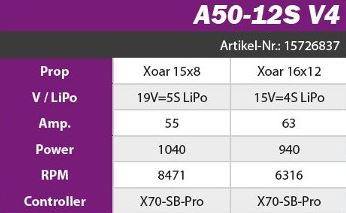 A50-12S V4 kv480 Beschreibung: Für Motormodelle bis ca. 3Kg und Segler bis 9 Kg