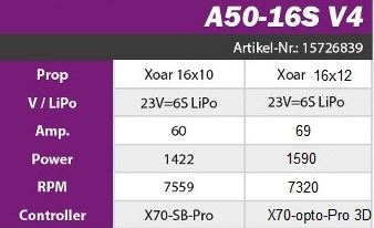 A50-16S V4 kv365 Beschreibung: Für Motormodelle bis ca. 3Kg und Segler bis 9 Kg