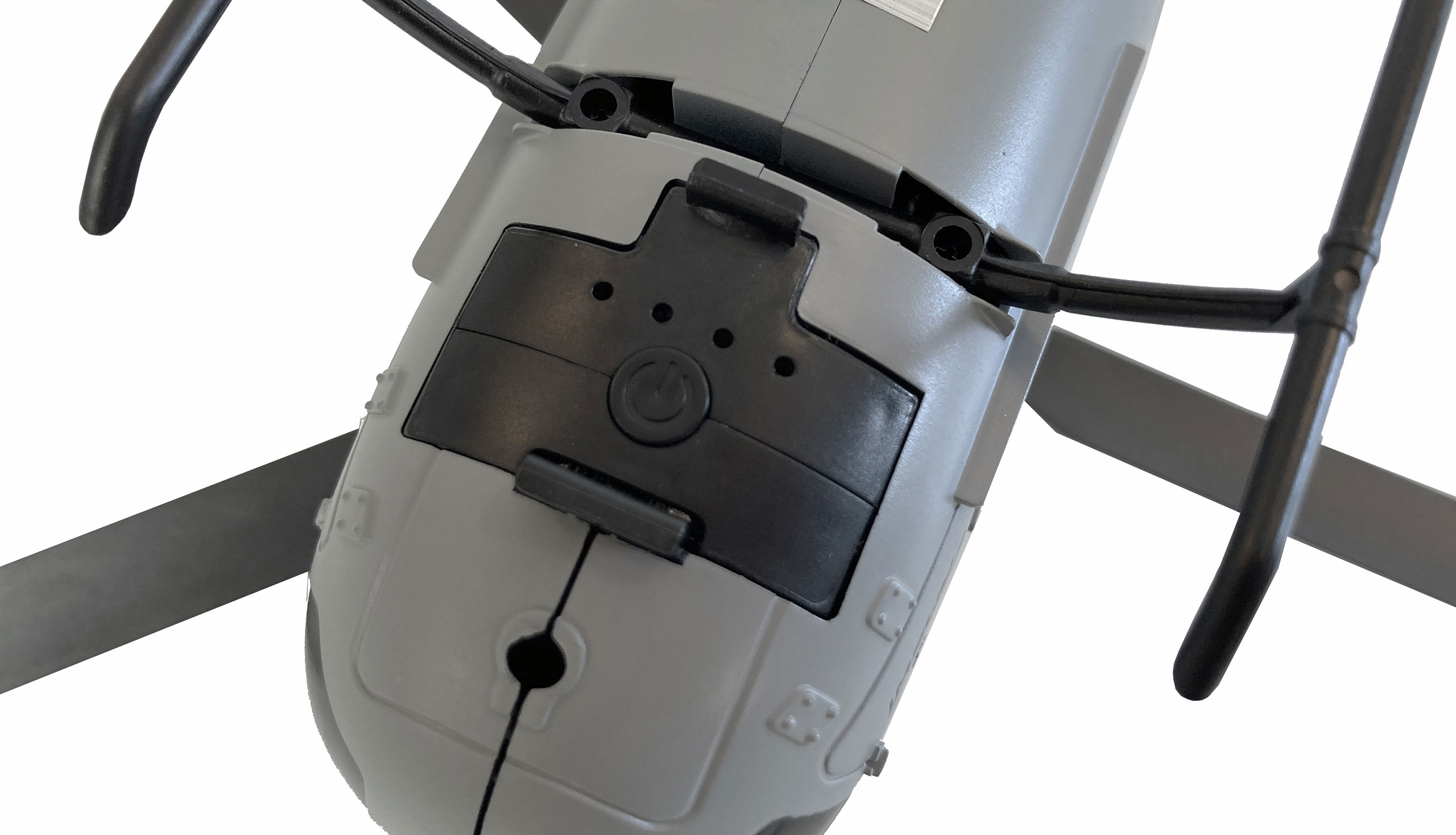 Neuartiges Akku Slide-Lock Stecksystem auf der Unterseite des Modells für schnellen Akkuwechsel