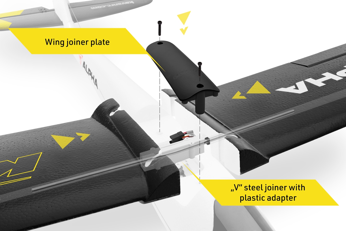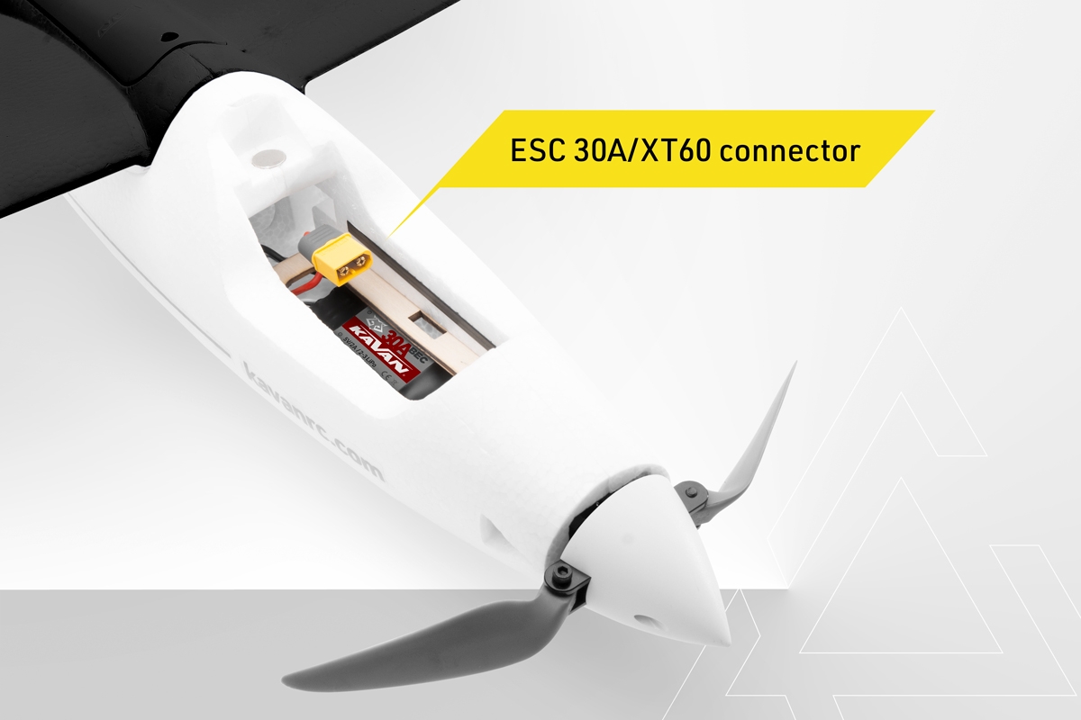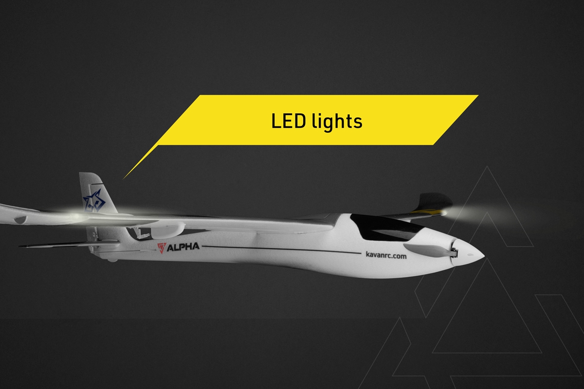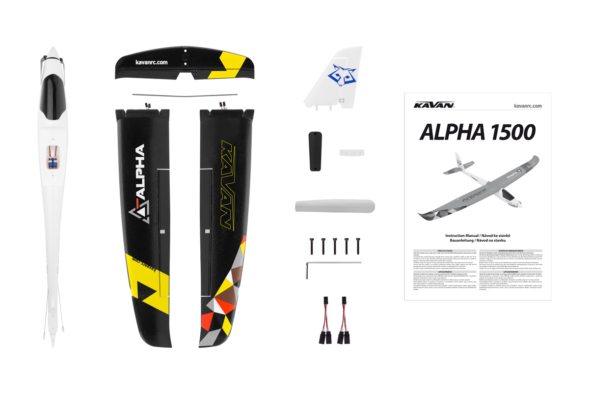 Das ARF Set beinhaltet: einen Rumpf aus EPO mit einem montierten Brushless-Motor, Klapppropeller 8,5×6″, Drehzahlregler KAVAN 30A und 2 KAVAN GO-09 Servos, einen Flügel aus EPO mit 2 montierten KAVAN GO-09 Servos und LED Lichtern, Leitwerke aus EPO, einen Stahl-Flügelverbinder und eine ausführliche Bau- und Fluganleitung.