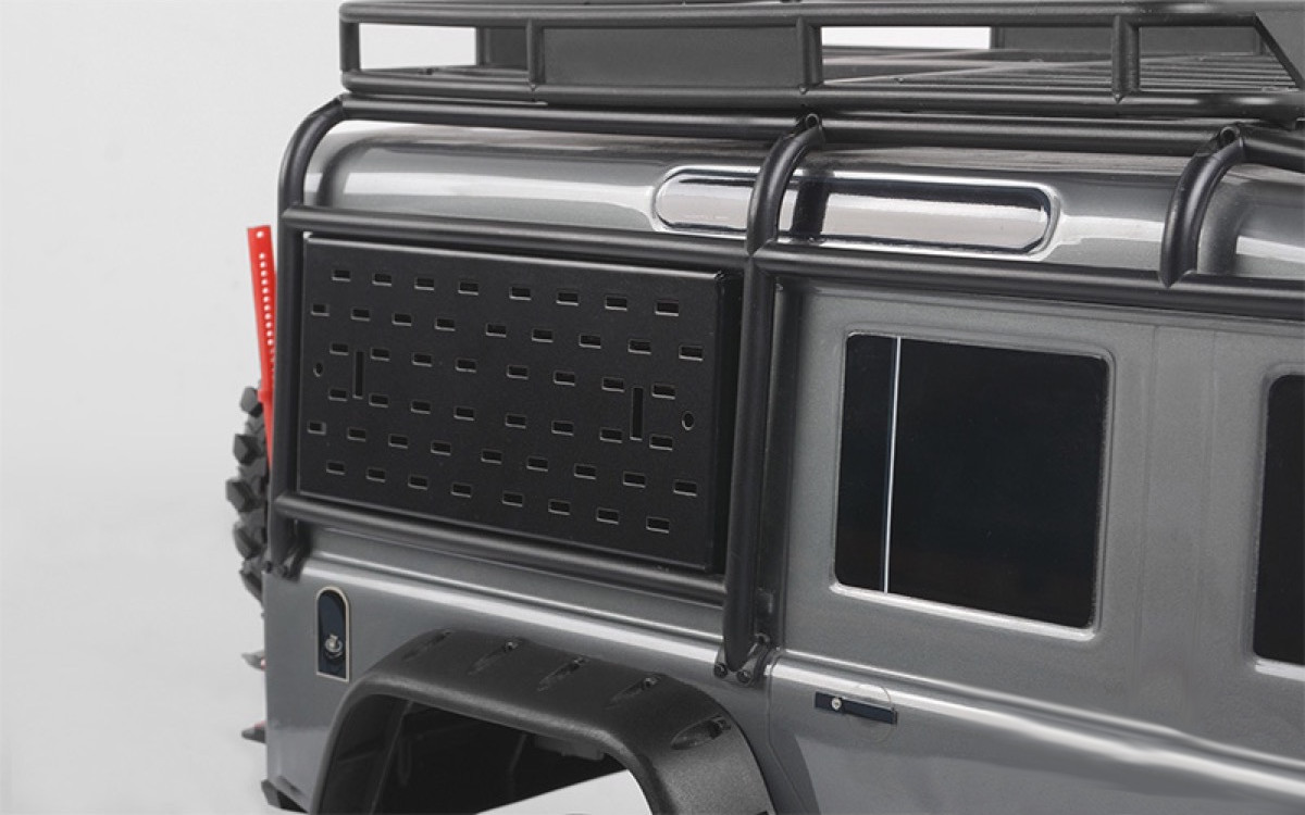 TRAXXAS TRX-4 Land Rover Defender – Aluminium Heckscheibenschutz, ausserdem kann man wunderbar Teile wie Kanister oder andere Werkzeuge daran montieren.