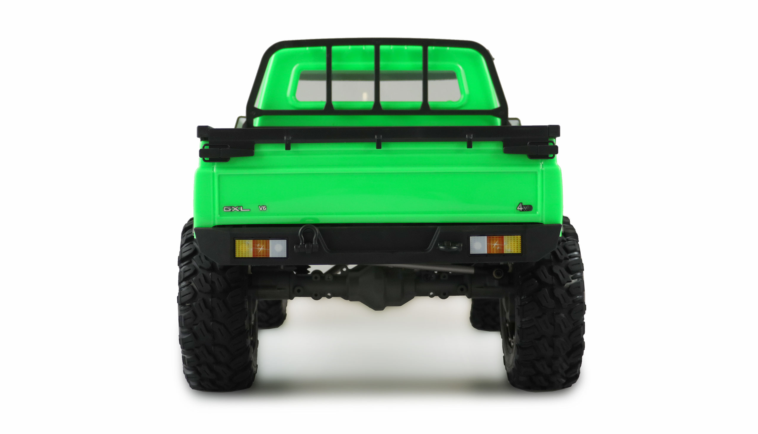 AMXRock RCX8B (Basis RTR) in grünDieser Top Crawler im Maßstab 1:8 vereint super Technik mit genialen Fahreigenschaften. Ausgestattet mit einem massiven 5mm starken Metallrahmen, Portalachsen, Aluminium Streben, hochwertigen komplett geschützten Öldruck Stoßdämpfern mit 500er Öl, 650er Bürstenmotor mit 23T, einem gedämpften Lenkungssystem und 2 – Gang Schaltgetriebe lässt diese Fahrzeug kaum Wünsche offen. Dieses Fahrzeug ist eine komplette Neuentwicklung und bringt einige neuartige Systeme zum ersten Mal auf den Markt.Features:5mm CNC gefräster 6061 Alu RahmenCVD AntriebswellenEinzigartiges Stoßdämpferdesign mit StaubschutzmanschettenEinzigartiges LenkungsdämpfungssystemPermanent gesperrte Achsen (Differentiale)Einzigartiges 2 – Gang Schaltgetriebe mit SchutzfunktionHochwertige Karosserie mit Magnetverschluss 1,2mm PVC4 Kanal FernsteuersystemHobbywing WP-1060 ESC (Li-Po fähig) 650 Crawler Motor brushed 23TEinstellbare Alu-MotorhalterungCNC gefrästes MotorritzelLenkservo 15kg Metallgetriebe WPSchaltservo 0,9kg, 17gKomplett kugelgelagertTechnische Daten:Länge: 648mmBreite: 293mmHöhe: 278mmRadstand: 375mmBodenfreiheit: min. 61mmRaddurchmesser: 134mmHigh Grip Super Soft ReifenFelgen: 39 x 75mmGewicht o. Akku: ca. 3,6kgMotor: 650 brushed 23TESC: Hobbywing WP-1060 (Li-Po fähig) Fernsteuerung: 2,4GHz 4 KanalKarosserie: 1,2mm PVC lackiertRahmen: 5mm CNC Alu 6061Lieferumfang:komplett montiertes Auto2,4GHz FernsteuerungAnleitung DE / ENBenötigtes Zubeör:Akku (Ni-Mh 7,2V oder Li-Po 7,4V) z.B. Amewi Art. 28895, 28899, 28900, 289024x Batterie 1,5V AA Mignon für SenderLadegerät