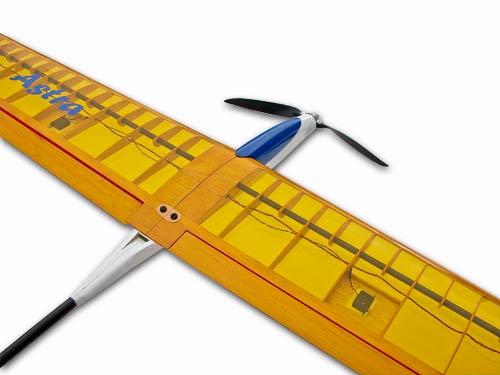 The wing spar from carbon fibre is giving the wing enough strength and stiffness.