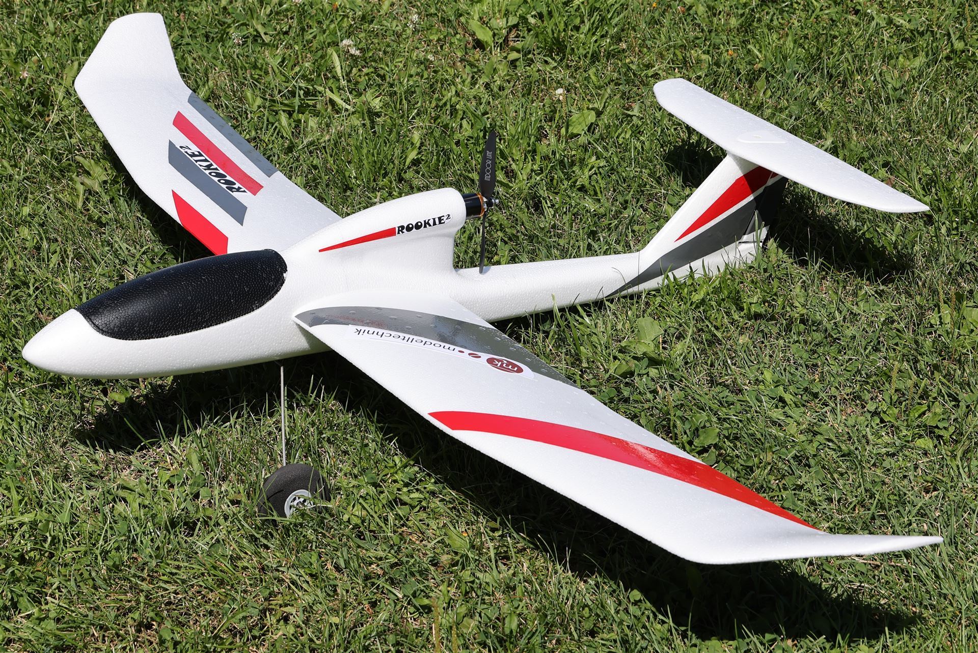 Vielseitig einsetzbares RC- Elektroflugmodell für 3 LiPo-Zellen. Speziell für Neueinsteiger konzipiert. Kann am Hang und in der Ebene als Elektrosegler eingesetzt werden. Optional kann das Modell mit einem Fahrwerk ausgestattet werden. Dies erweitert das Einsatzspektrum. Bodenstarts können durchgeführt bzw. geübt werden. Mit dem Rookie können Thermikflüge durchgeführt werden. Auch Kunstflug ist problemlos möglich. Durch die Anordnung des Motors befindet sich die Luftschraube beim Handstart nicht im Gefahrenbereich (Druckantrieb). Bei der Landung besteht keine Bruchgefahr der Luftschraube, da diese den Boden nicht kontaktiert. Der Rookie² kann auch als Basis für FPV-Fliegen dienen. Für die Einbauten ist das Rumpfboot geräumig und die Haube kann nach Belieben umgearbeitet werden. Das Filmen nach vorne ist ohne störende Luftschraube möglich.