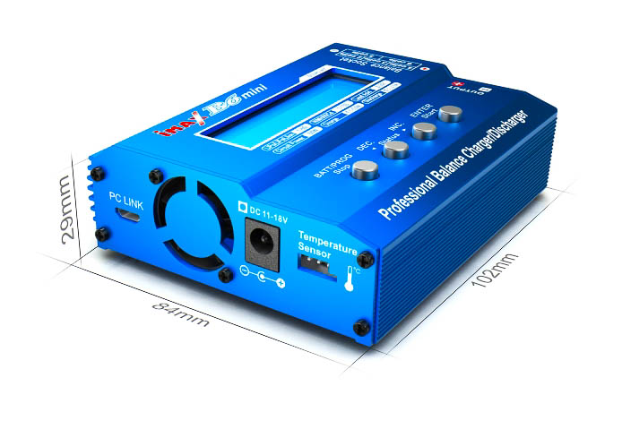 SKYRC B6 mini ist die kleine und überarbeitete Version des beliebten und bekannten IMAX B6 Ladegerätes. Verglichen mit dem B6 besitzt es einige neue Features und Funktionen und das in einem super kompaktem Gehäuse. Kleinste Abmessungen mit riesen Power, so besitzt es im Vergleich zum B6 besitzt es bis zu 20% mehr Ladeleistung. Benutzer können das B6 mini zudem mit einem PC verbinden um beispielsweise die Firmware zu aktualisieren oder das Gerät darüber zu steuern. Des Weiteren besitzt der B6 mini einen Lithium Akku Messgerät und kann darüber hinaus den Innenwiederstand eines Akkus messen.