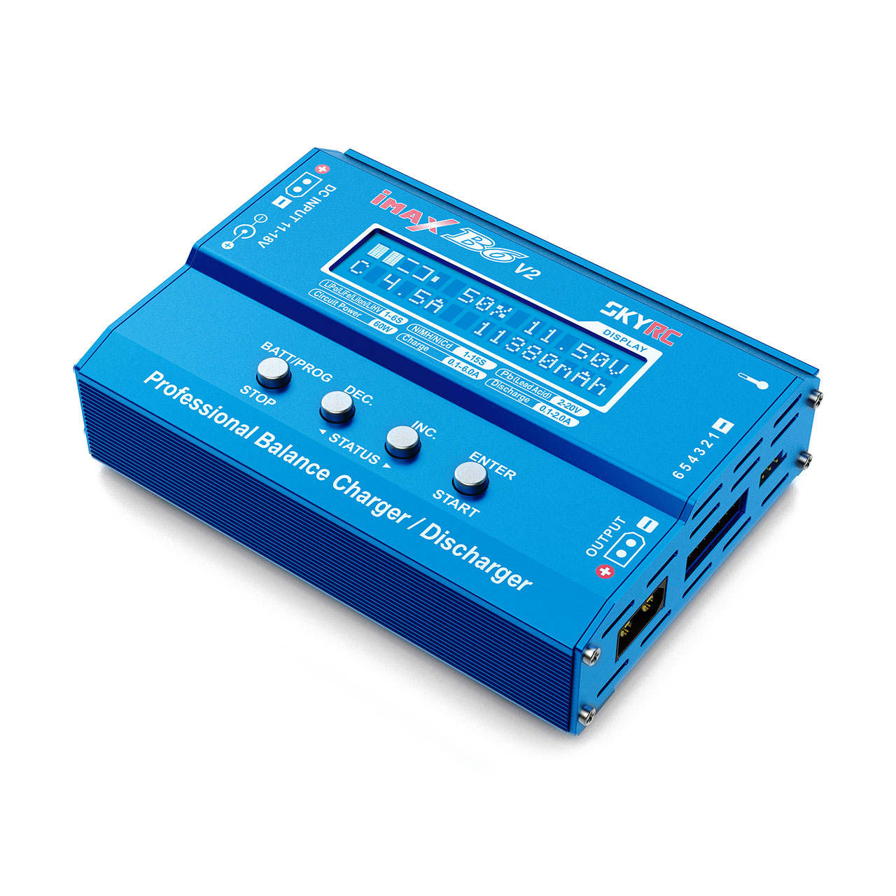 Der SKYRC B6 DC V2 ist ein leistungsstarkes, Mikroprozessorsteuerung Lade-/ Entladegerät auf der nächsten Evolutionsstufe mit Akkumanagement für den Einsatz mit allen gängigen Batterietypen. Es besitzt maximal 6A Ladestrom bei max. 60W und erleichtert dem Anwender das Ablesen des Displays dank des neuartigen Batteriee-Icons mit Prozentanzeige daneben.