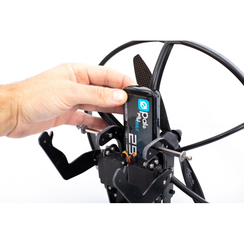 - Die Lipo-Batterie (je nach Motorisierung zu wählen) mit einem 3S 2500mAh ist ideal, wenn der 380W auf der Rückseite des Piloten untergebracht werden soll.a receiver