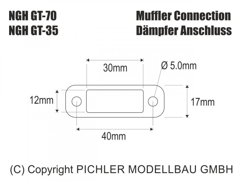 Kompakte Einbaumaße und niedriges Gewicht zeichnen den NGH GT-35 Benzinmotor aus. Durch den vorne platzierten Vergaser ist der Motor auch für den Einbau unter schmalen Motorhauben bestens geeignet. Auf Wunsch können auch andere Schalldämpferanlagen von deutschen Herstellern wie Krumscheidt oder MTW Weihershäuser verwendet werden. Bitte beachten Sie hierzu die Anschluss-Skizze in der Bildergalerie.