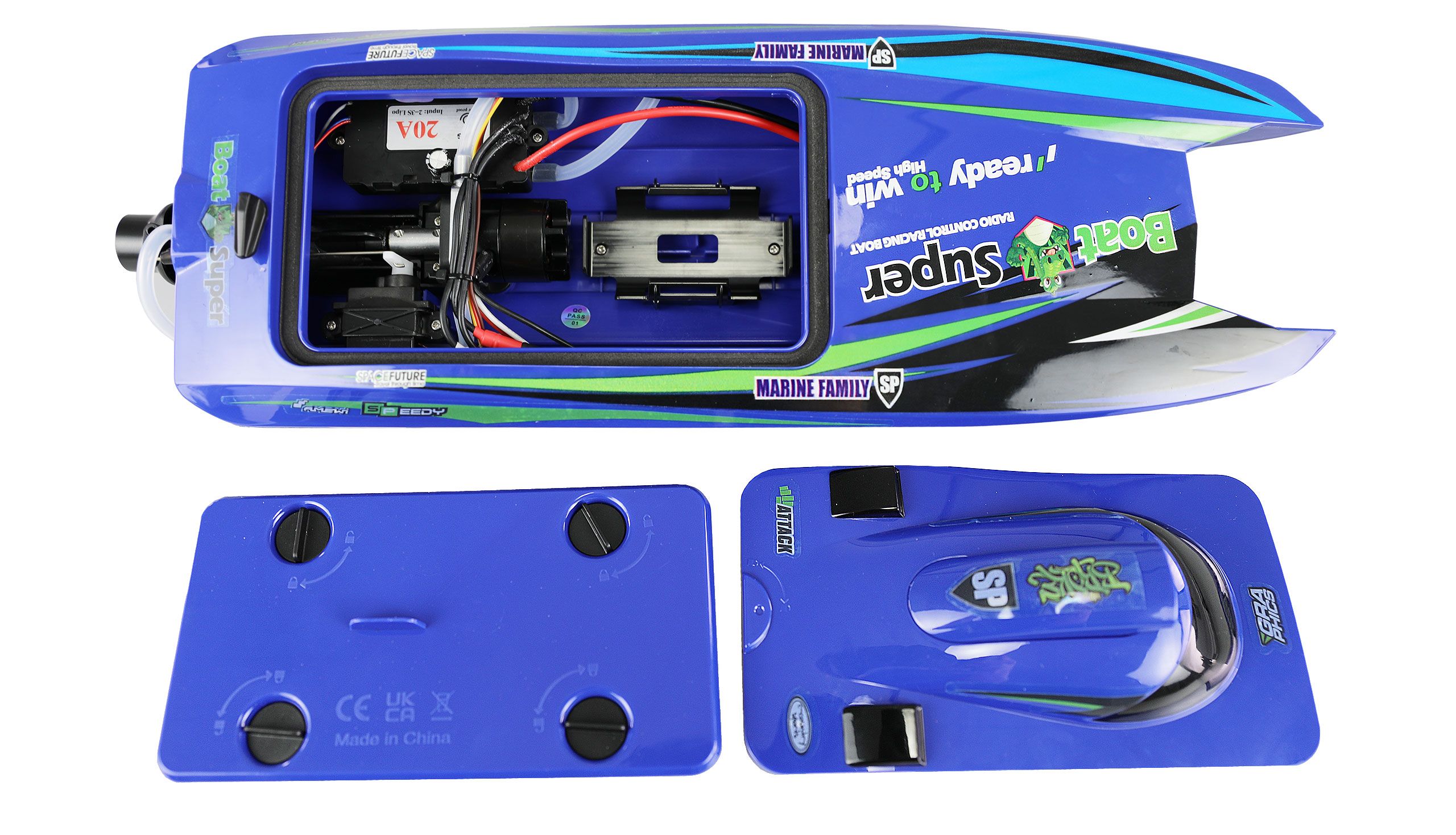 Stell dir vor, du hast ein brandneues Rennboot der Offshore-Klasse, das nicht nur durch sein auffälliges Design besticht, sondern auch mit einem effizienten Jetantrieb ausgestattet ist: Dieses 400mm lange Kraftpaket erreicht Geschwindigkeiten von über 30 km/h und meistert nahezu jede Wasseroberfläche – solange nur ein wenig Wasser unter dem Kiel ist! Der innovative Jetantrieb eröffnet dir mehr Möglichkeiten als ein traditioneller Propellerantrieb, da er Wasser unter dem Boot ansaugt (geschützt durch ein Gitter) und es als komprimierten Strahl am Heck ausstößt, was für enormen Schub und schnelle Beschleunigung sorgt. Der beiliegende 3S 11,1V Li-Ion Akku liefert genug Power für alle deine Manöver, und du kannst sogar auf überschwemmten Wiesen fahren. Äste, Steine oder andere Hindernisse? Kein Problem, dein Rennboot fährt einfach drüber hinweg. Dank der Schubvektorsteuerung, bei der der Antriebsstrahl zur Steuerung genutzt wird, bietet das Boot eine beeindruckende Agilität und Wendigkeit, perfekt für auch die engsten Gewässer. Der Rumpf ist mit einem Schnellverschluss für den Akkuwechsel und einem zusätzlichen Deckel gegen Wasser ausgerüstet. Sowohl der eingebaute Brushless-Motor als auch der Regler sind wassergekühlt, und das zuverlässige 2,4GHz Sendersystem bietet Zusatzfunktionen wie anpassbare Geschwindigkeit und Trimmung, damit du das Boot genau auf deine Bedürfnisse und Fähigkeiten abstimmen kannst.
