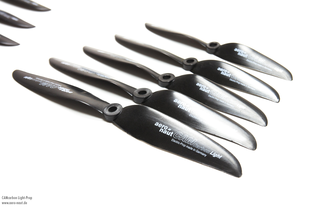 CAMcarbon Light Prop Diese Luftschraubenserie ist für Elektroantriebe ausgelegt und wurde speziell für hohen Schub auch bei bereits niedrigen Drehzahlen berechnet. Um dies zu erreichen, wurde ein dünnes Profil mit größerer Tiefe verwendet. Mit dieser Serie wurde eine leichte, stabile und verwindungssteife, Carbon-verstärkte Luftschraube geschaffen. Die Luftschrauben sind besonders auch für Multicopter-Modelle geeignet sind und können teilweise auch paarweise eingesetzt werden (links- und rechtsdrehend). Die Entwicklung wurde auf einem CAD-System durchgeführt, um einen exakten Verlauf der Steigung und Profilform zu gewährleisten. Die Blattform ist baugleich mit unseren bewährten Cam-Carbon-Klappluftschrauben, jedoch mit einer kleineren und damit leichteren Nabe. Die in CNC-Technik gefertigten Formen sowie die kohlefaserverstärkten Luftschrauben werden ausschließlich in Deutschland hergestellt. Im Lieferumfang ist ein Distanzringsatz für die Wellendurchmesser 5, 6, 6,3 und 7 mm enthalten.