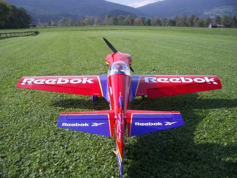 - Höhenleitwerk: Balsarahmen mit zweifarbigem Oracover® bezogen. Der Stabilisator kann für den Transport zerlegt werden