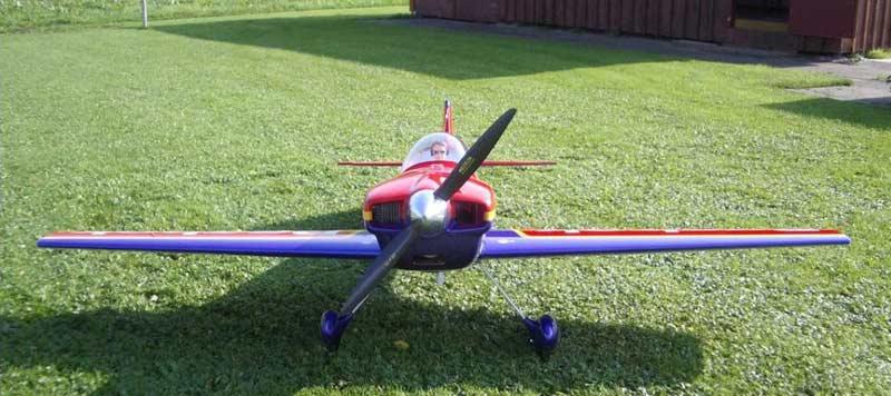 - Rumpf aus Balsaholz, Sperrholz und Polystyrol, dann mit zweifarbigem Oracover® bezogen