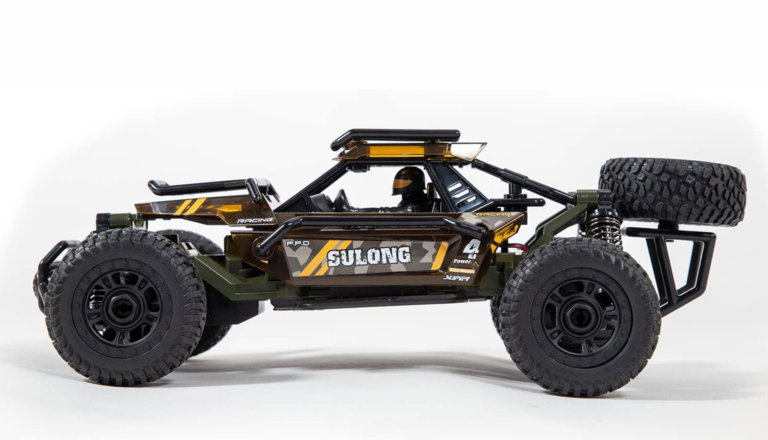 Bausatz eines coolen 2WD-Racers im Maßstab 1:18, der Aufbau- und Fahrspaß miteinander kombiniert. Das 71-teilige Modell ist dank intelligentem Stecksystem komplett ohne Werkzeug innerhalb von 30min montierbar und hält ganz ohne Klebstoff. Der gesamte Aufbau und die Karosserie bestehen aus festem ABS-Kunststoff. UV-beständige Aufkleber mit trendigen Mustern verleihen dem Desert Racer bei Bedarf eine individuellere Optik. Mit Reifen aus einer High-Grip Gummimischung, Stoßdämpfen und Spritzwasserschutz ist das Modell ebenso outdoortauglich und macht auch im Gelände eine gute Figur. Der Buggy erreicht eine Höchstgeschwindigkeit von ca. 8m/h. Eine moderne 2,4GHz Pistolenfernsteuerung ist bereits im Lieferumfang enthalten. Für die Inbetriebnahme des Modells werden lediglich noch haushaltsübliche Batterien für das Fahrzeug und die Fernsteuerung benötigt.