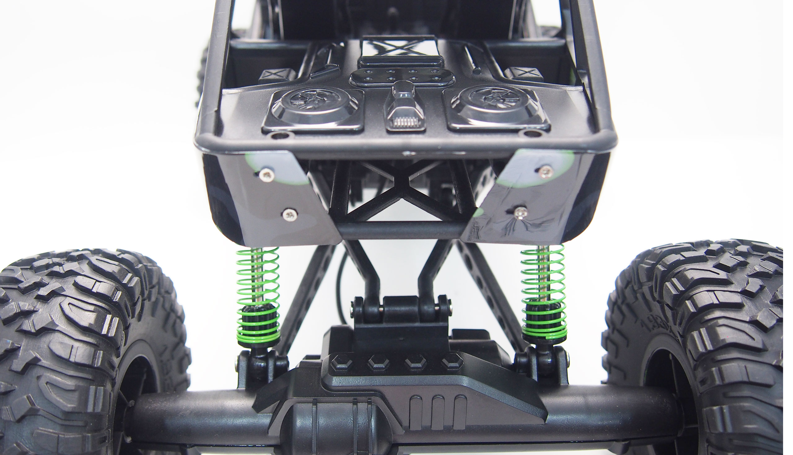 Die Natur ruft. Bei scheinbar unüberwindbaren Hindernissen kann der allradgetriebene (4WD) Crazy Crawler im Maßstab 1:10 seine ganzen Stärkenausspielen. Dazu zählt die große Bodenfreiheit,der leistungsstarke Motor, die griffigen und übergroßen Reifen und die fein dosierbare 2,4 GHz Funksteuerung. Die Karosse ist schlagzäh und robust, die Stoßdämpfer sind perfekt für jede Action abgestimmt. Lange Federwege ermöglichen volle Action. Alle zum Betrieb benötigten Teile- selbst die Batterien für die Fernsteuerung -sind bereits im Lieferumfang enthalten. Die oft schwierige Balance zwischen Motorleistung, Fahrwerk, Antrieb und Steuerung wurde bei diesem Kletterkünstler perfekt gefunden. Die Elektronik und der Motor sind gut geschützt, somit kann der Crawler bei jedem Wetter und auf jedem Gelände gefahren werden. Zwei helle LED’s in den vorderen Scheinwerfern unterstreichen den dynamischen Charakter des Crazy Crawlers.