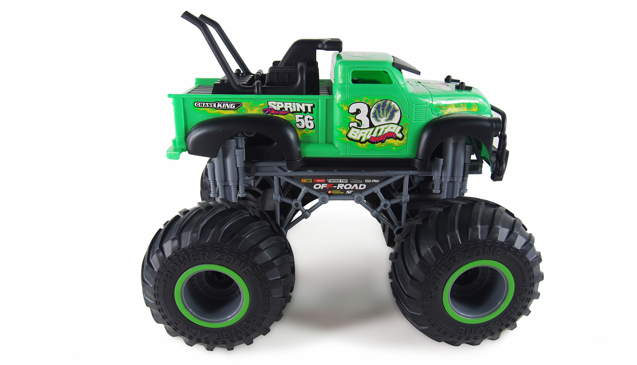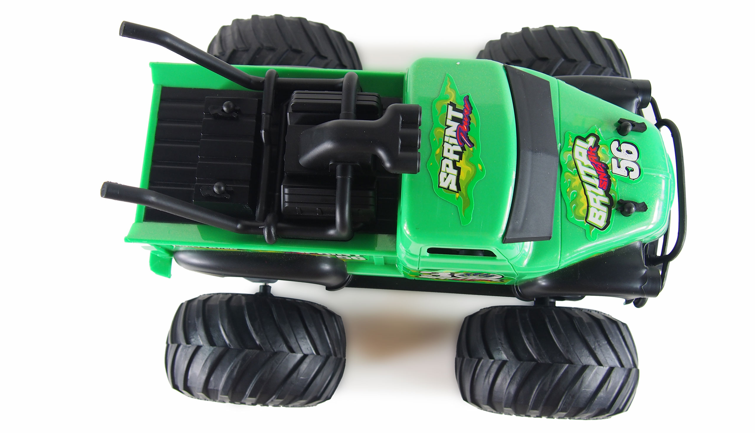 Monströs, riesige Gummireifen, auffällige Optik, vor Spritzwasser geschützt, RTR (Ready to run – alles enthalten) das ist die perfekte Mischung um Kinderaugen zum Leuchten zu bringen. Diese Monstertrucks im Maßstab 1:16 sind technisch und optisch ganz weit vorne und die erreichbare Geschwindigkeit liegt sogar bei etwa 15 km/h. Durch den Spritzwasserschutz sind alle Fahrzeuge dieser Serie uneingeschränkt outdoor tauglich und durch den guten Lieferumfang (RTR) kann der Spaß sofort nach dem Laden des mitgelieferten Akkus losgehen. Features:Gummireifen2,4GHz SystemRTR (alle für den Betrieb erforderlichen Teile bereits im Lieferumfang enthalten)vor Spritzwasser geschütztEinsteigertauglich2WDsehr hohe BodenfreiheitTechnische Daten:Länge: 275mmBreite: 240mmHöhe: 220mmGewicht: 1000g fahrfertig Akku: Ni-Mh 6V 700mAhLadegerät: USB 6V 250mAhSender: 2,4GHzBatterien für Sender: 2 x AA 1,5V Mignon (enthalten)Lieferumfang:Fahrzeug MonstertruckSender 2,4GHzAkku 6V 700mAh Ni-MH, HBX-SteckerBatterien für Sender (2 x 1,5V Mignon AA)Ladegerät USB 250mAh 6V Anleitung (deutsch/englisch)ab 6 JahreWichtiger Hinweis:Das Fahren mit mehreren Fahrzeuge diesen Typs ist nicht möglich (Frequenzüberschneidung).