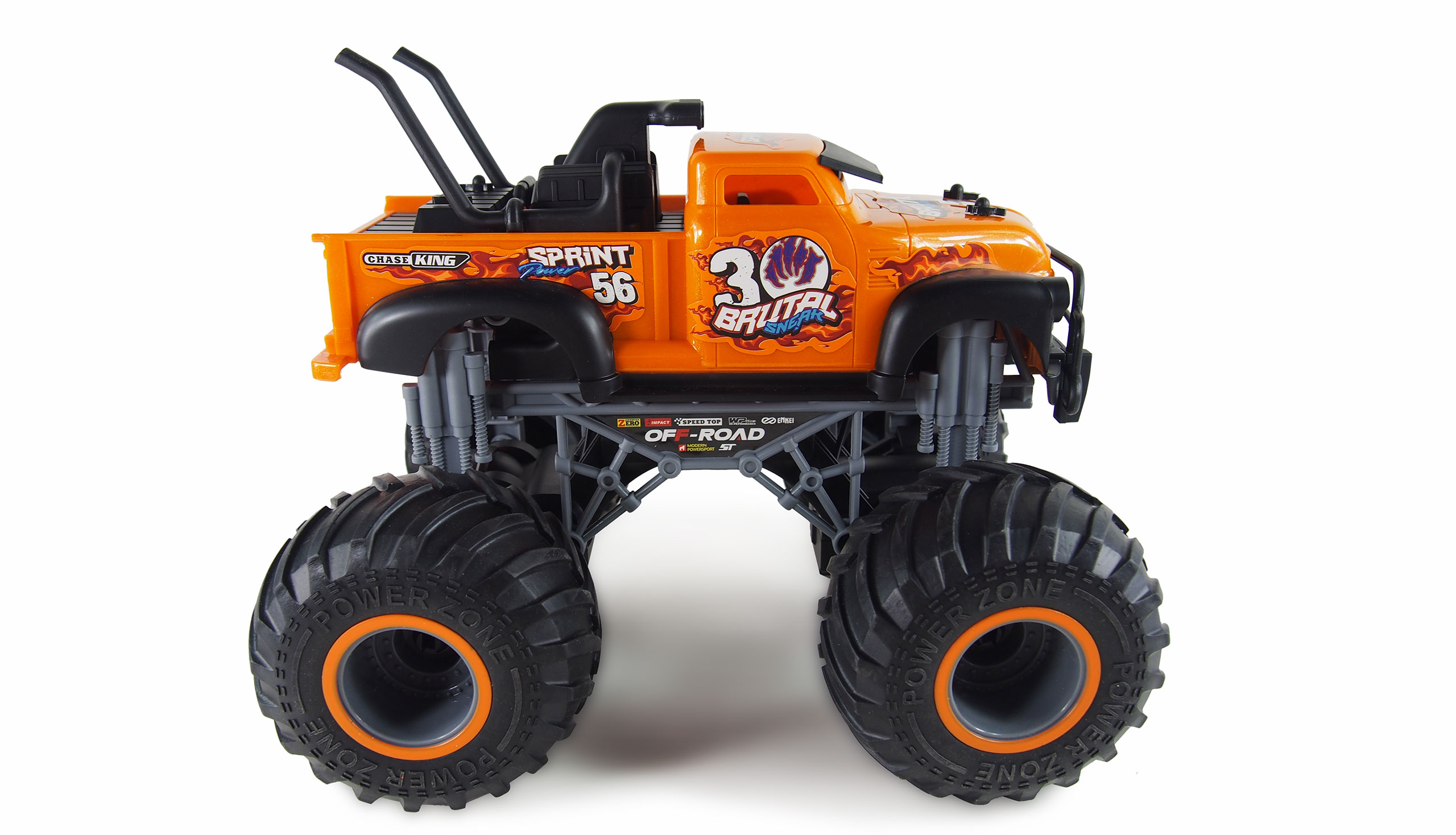 Monströs, riesige Gummireifen, auffällige Optik, vor Spritzwasser geschützt, RTR (Ready to run – alles enthalten) das ist die perfekte Mischung um Kinderaugen zum Leuchten zu bringen. Diese Monstertrucks im Maßstab 1:16 sind technisch und optisch ganz weit vorne und die erreichbare Geschwindigkeit liegt sogar bei etwa 15 km/h. Durch den Spritzwasserschutz sind alle Fahrzeuge dieser Serie uneingeschränkt outdoor tauglich und durch den guten Lieferumfang (RTR) kann der Spaß sofort nach dem Laden des mitgelieferten Akkus losgehen. Features:Gummireifen2,4GHz SystemRTR (alle für den Betrieb erforderlichen Teile bereits im Lieferumfang enthalten)vor Spritzwasser geschütztEinsteigertauglich2WDsehr hohe BodenfreiheitTechnische Daten:Länge: 275mmBreite: 240mmHöhe: 220mmGewicht: 1000g fahrfertig Akku: Ni-Mh 6V 700mAhLadegerät: USB 6V 250mAhSender: 2,4GHzBatterien für Sender: 2 x AA 1,5V Mignon (enthalten)Lieferumfang:Fahrzeug MonstertruckSender 2,4GHzAkku 6V 700mAh Ni-MH, HBX-SteckerBatterien für Sender (2 x 1,5V Mignon AA)Ladegerät USB 250mAh 6V Anleitung (deutsch/englisch)ab 6 JahreWichtiger Hinweis:Das Fahren mit mehreren Fahrzeuge diesen Typs ist nicht möglich (Frequenzüberschneidung).