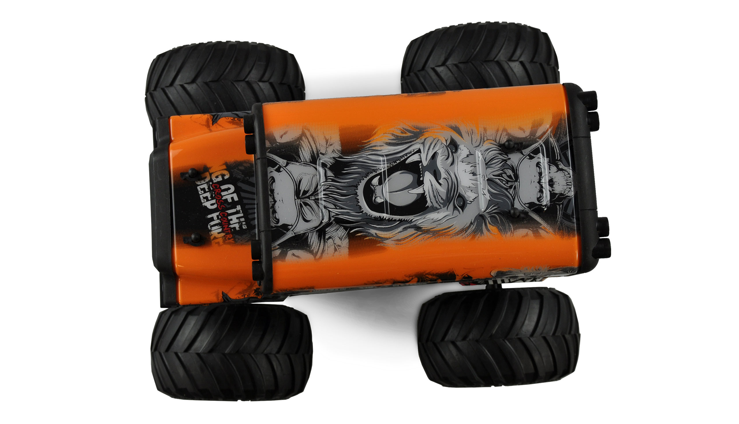Monströs, riesige Gummireifen, auffällige Optik, vor Spritzwasser geschützt, RTR (Ready to run – alles enthalten) das ist die perfekte Mischung um Kinderaugen zum Leuchten zu bringen. Diese Monstertrucks im Maßstab 1:16 sind technisch und optisch ganz weit vorne und die erreichbare Geschwindigkeit liegt sogar bei etwa 15 km/h. Durch den Spritzwasserschutz sind alle Fahrzeuge dieser Serie uneingeschränkt outdoor tauglich und durch den guten Lieferumfang (RTR) kann der Spaß sofort nach dem Laden des mitgelieferten Akkus losgehen. Features:Gummireifen2,4GHz SystemRTR (alle für den Betrieb erforderlichen Teile bereits im Lieferumfang enthalten)vor Spritzwasser geschütztEinsteigertauglich2WDsehr hohe BodenfreiheitTechnische Daten:Länge: 275mmBreite: 240mmHöhe: 220mmGewicht: 1000g fahrfertig Akku: Ni-Mh 6V 700mAhLadegerät: USB 6V 250mAhSender: 2,4GHzBatterien für Sender: 2 x AA 1,5V Mignon (enthalten)Lieferumfang:Fahrzeug MonstertruckSender 2,4GHzAkku 6V 700mAh Ni-MH, HBX-SteckerBatterien für Sender (2 x 1,5V Mignon AA)Ladegerät USB 250mAh 6V Anleitung (deutsch/englisch)ab 6 JahreWichtiger Hinweis:Das Fahren mit mehreren Fahrzeuge diesen Typs ist nicht möglich.