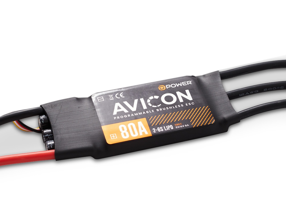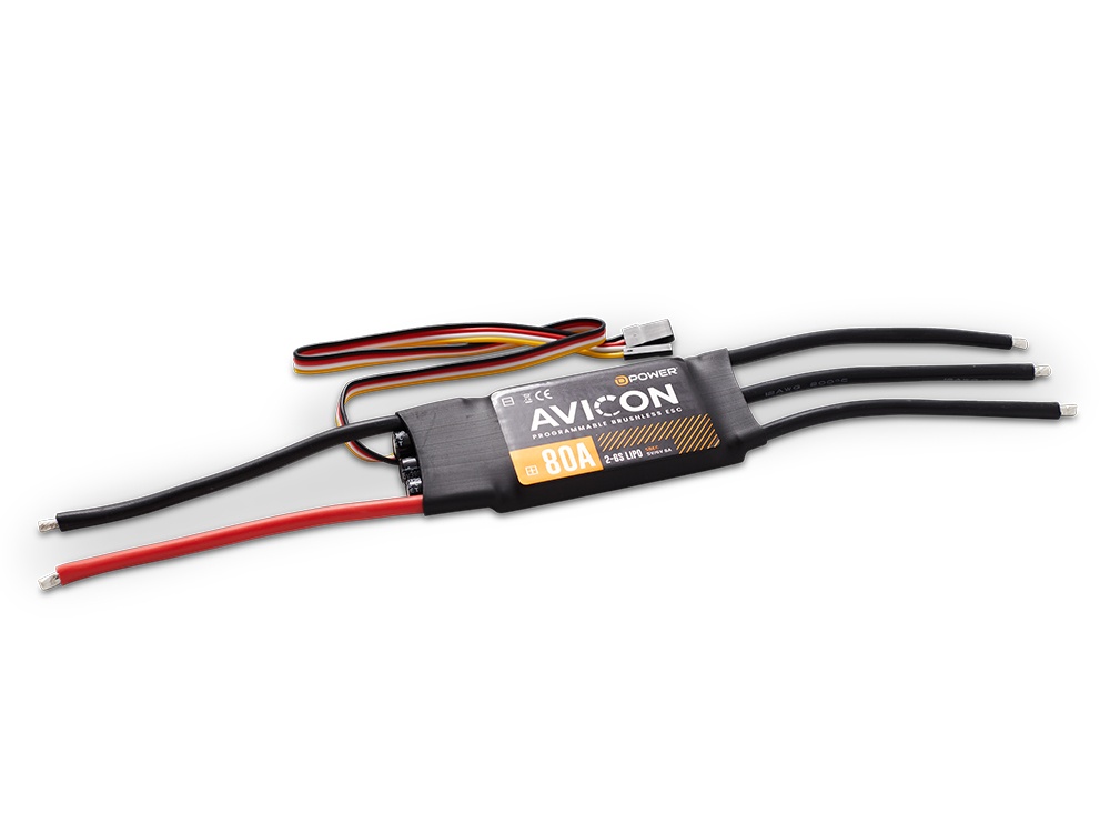 Die AVICON-Serie von D-Power ist eine Brushless Regler-Serie der neuesten MOSFET-Generation und wurde speziell für Flugmodelle entwickelt. Kompakte Abmessungen, ein relativ niedriges Gewicht, überzeugende Anlauf- und Drossellinearitäten und extrem hohe Zuverlässigkeiten zeichnen diese ESC-Serie aus.
