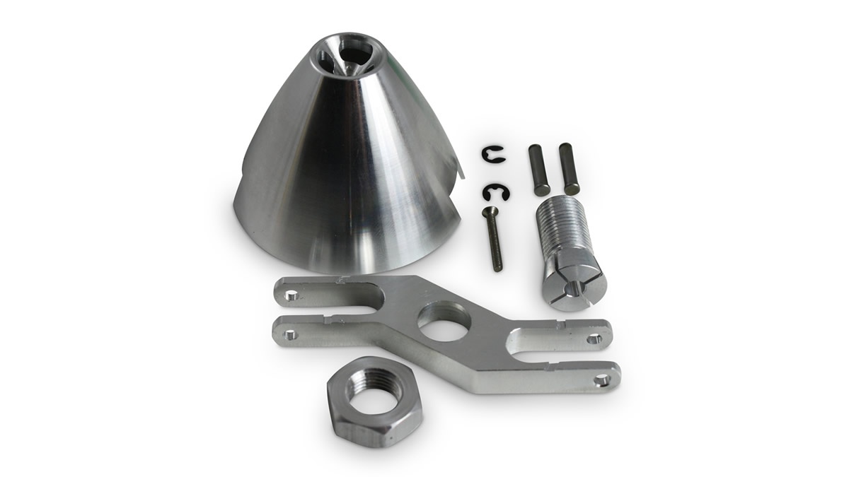 Die D-Power Turbo Spinner aus Aluminium sind leicht und sorgen für eine bessere Kühlung des Motors. Die Z-Gabel ermöglicht ein noch engeres Anlegen der Klappluftschraubenblätter an den Rumpf. Mit einem Klemmkonus werden die Turbo Spinner an der Motorwelle befestigt.