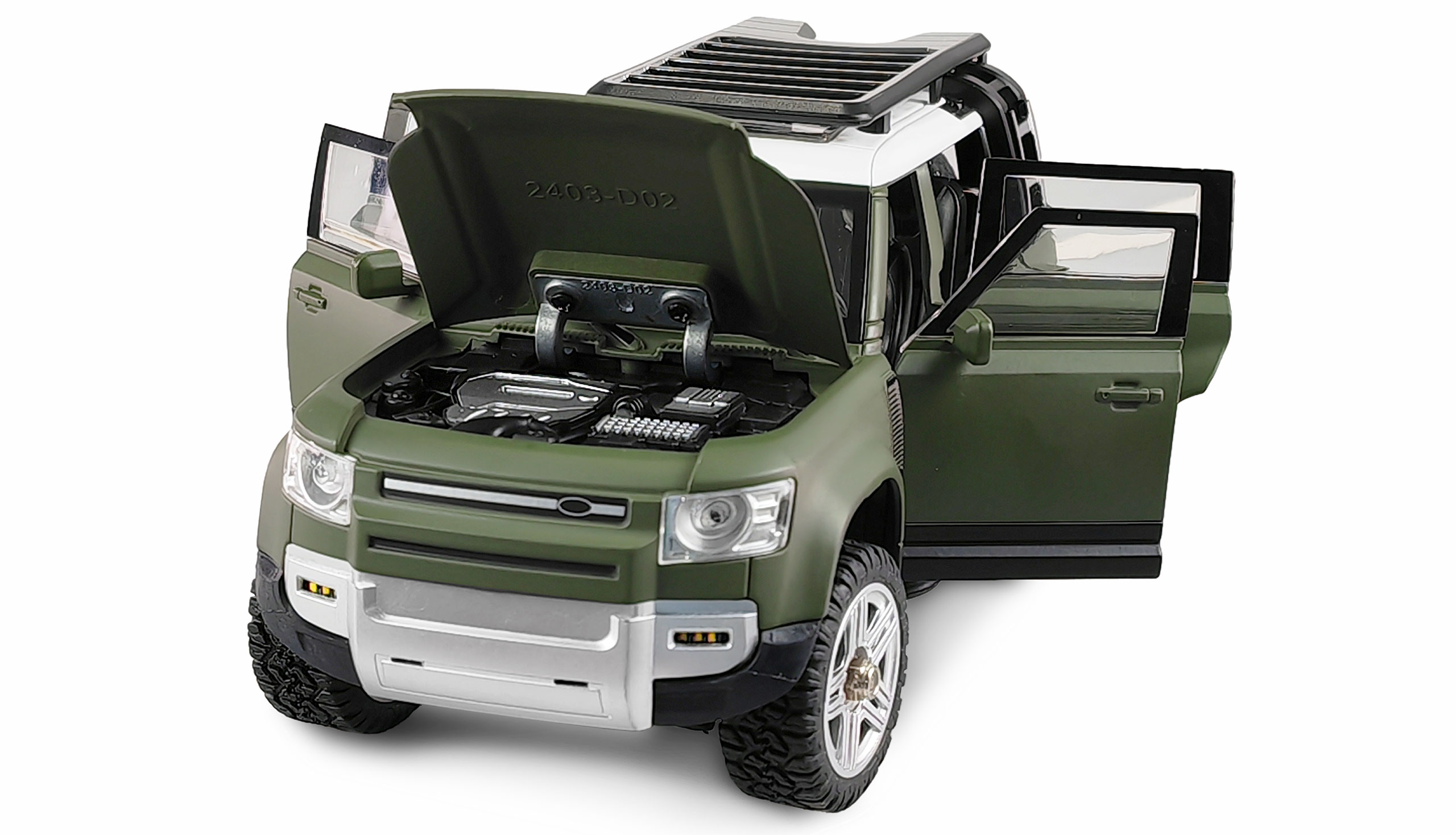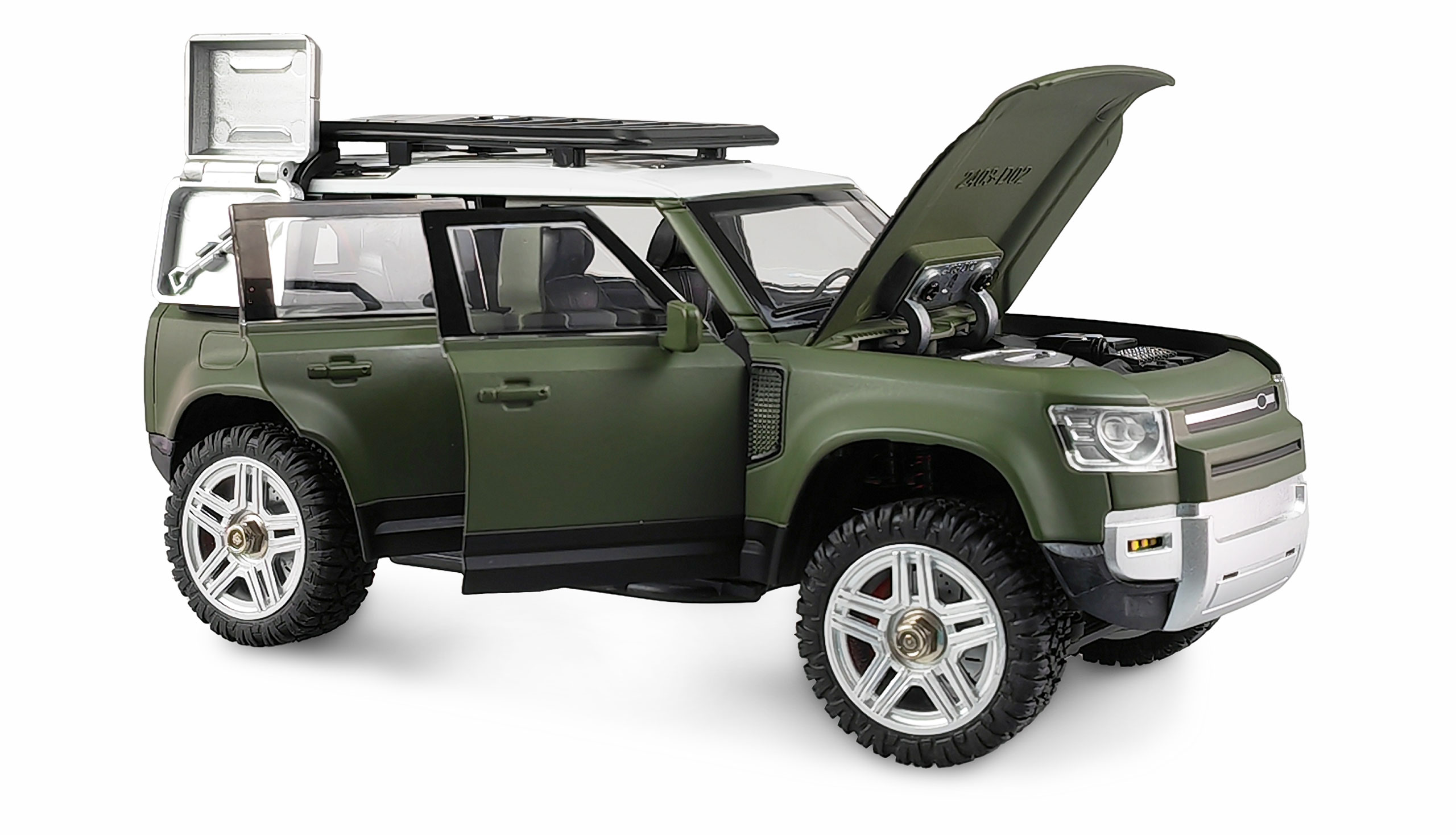 Der D110X24 Scale Crawler im Maßstab 1:24 ist ein „Must have für jeden Scale-Fan – die komplette Karosserie ist aus Metall gefertigt, ermöglicht noch mehr Gewicht für noch bessere Traktion. Der kleine Kletterer verfügt als weiteres Highlight über eine LED-Beleuchtungsanlage mit Fahrlicht, Rückleuchten, Blinker und Rückfahrlicht. Dank kräftigem brushed 4WD-Antrieb mit kompletten Metall-Teleskop-Antriebswellen, einem mehrfach untersetzten Getriebe und gesperrten Differentialen ist maximaler Vortrieb auf jedem Untergrund garantiert. Auch die profilierten Reifen aus einer Gummimischung für beste Traktion sorgen für ergiebige Klettereigenschaften. Das gesamte Modell ist vor Spritzwasser geschützt und dadurch voll outdoortauglich.
