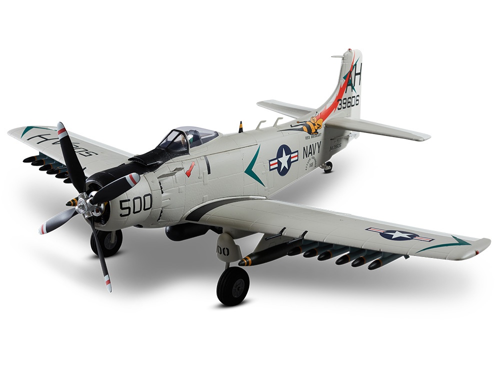 Die A-1 Skyraider von DERBEE ist ein originalgetreuer Mini-Warbird mit 80cm Spannweite. Das Modell ist sehr leicht und kompakt und eignet sich daher hervorragend für Flüge auf engen Flächen.