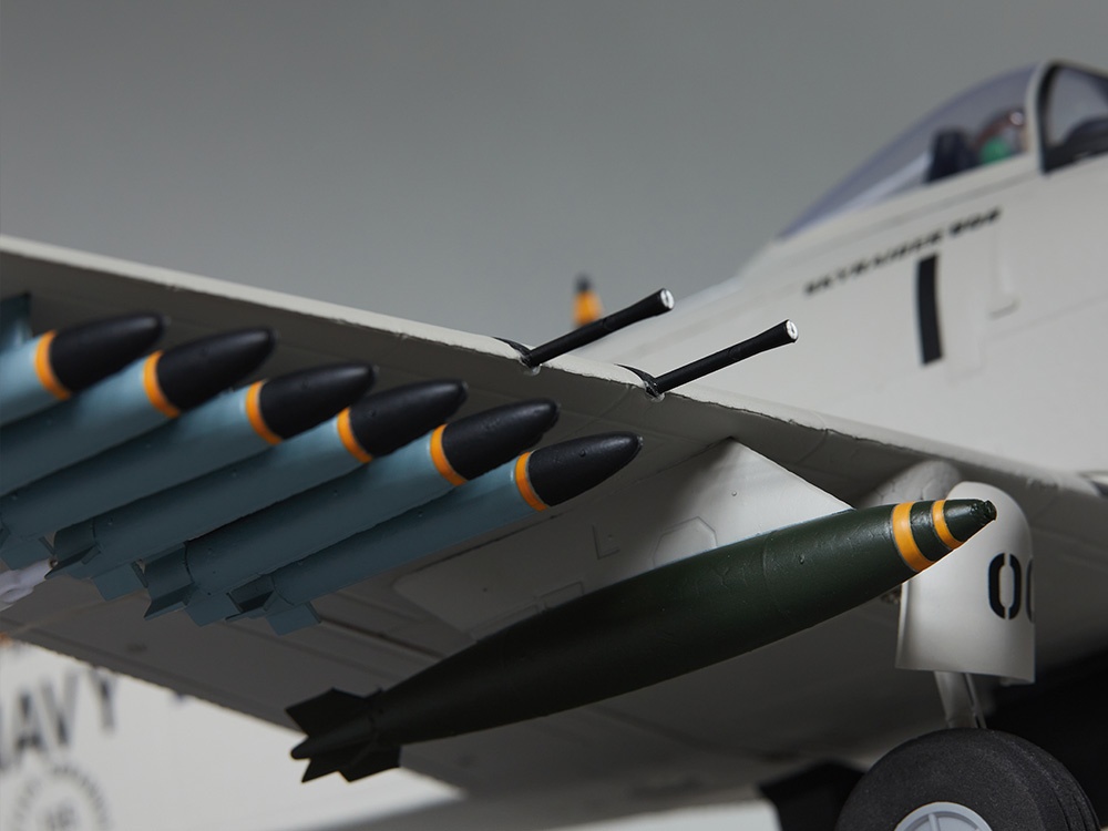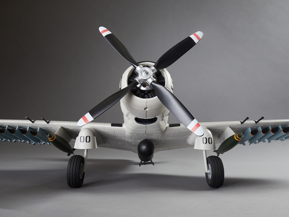 Eigenschaften • stabile und leichte EPO-Hartschaumkosntruktion • mit wenigen Handgriffen flugfertig montiert • leistungsstarker 1200KV Brushless-Motor und 20A Regler eingebaut • 4x 9g Servos fertig eingebaut • zahlreiche Scale Details wie Nieten, Bewaffnung, Motoren-Attrappe, u.v.m. • fertig lackiert und beklebt • bemalte Pilotenfigur eingebaut • stabiles Fahrwerk • abnehmbare Kabinenhaube • inklusive 4-Blatt-Propeller • Angelenktes Spornrad • erhältlich in dunkelblau oder hellgrau