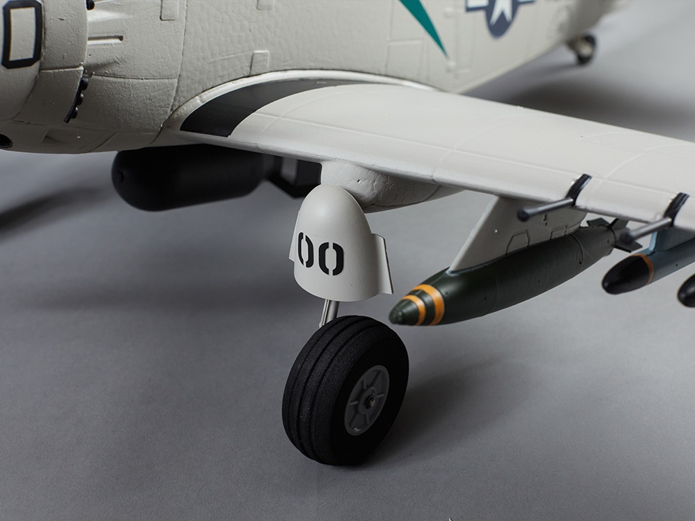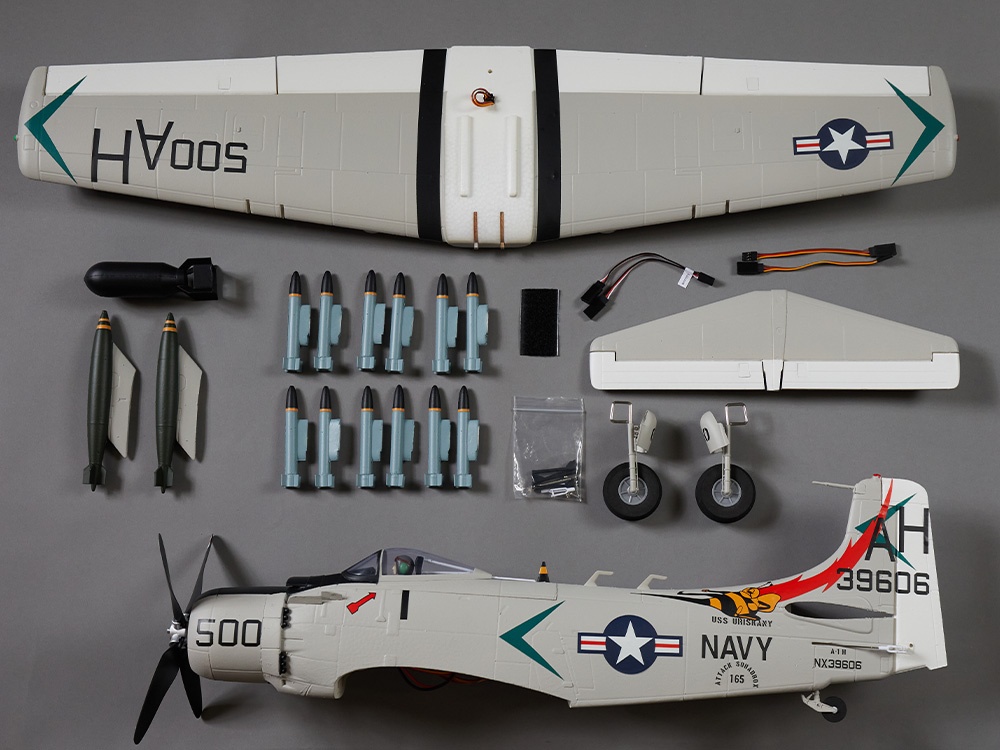 Leistungsstarker Antrieb Angetrieben wir die A-1 Skyraider durch einen leistungsstarken 1200KV Brushless-Motor mit einem 20A Flugregler. In Kombination mit einem 3S LiPo-Akku verfügt der Warbird über ausreichend Leistung für spektakuläre Flugmanöver.