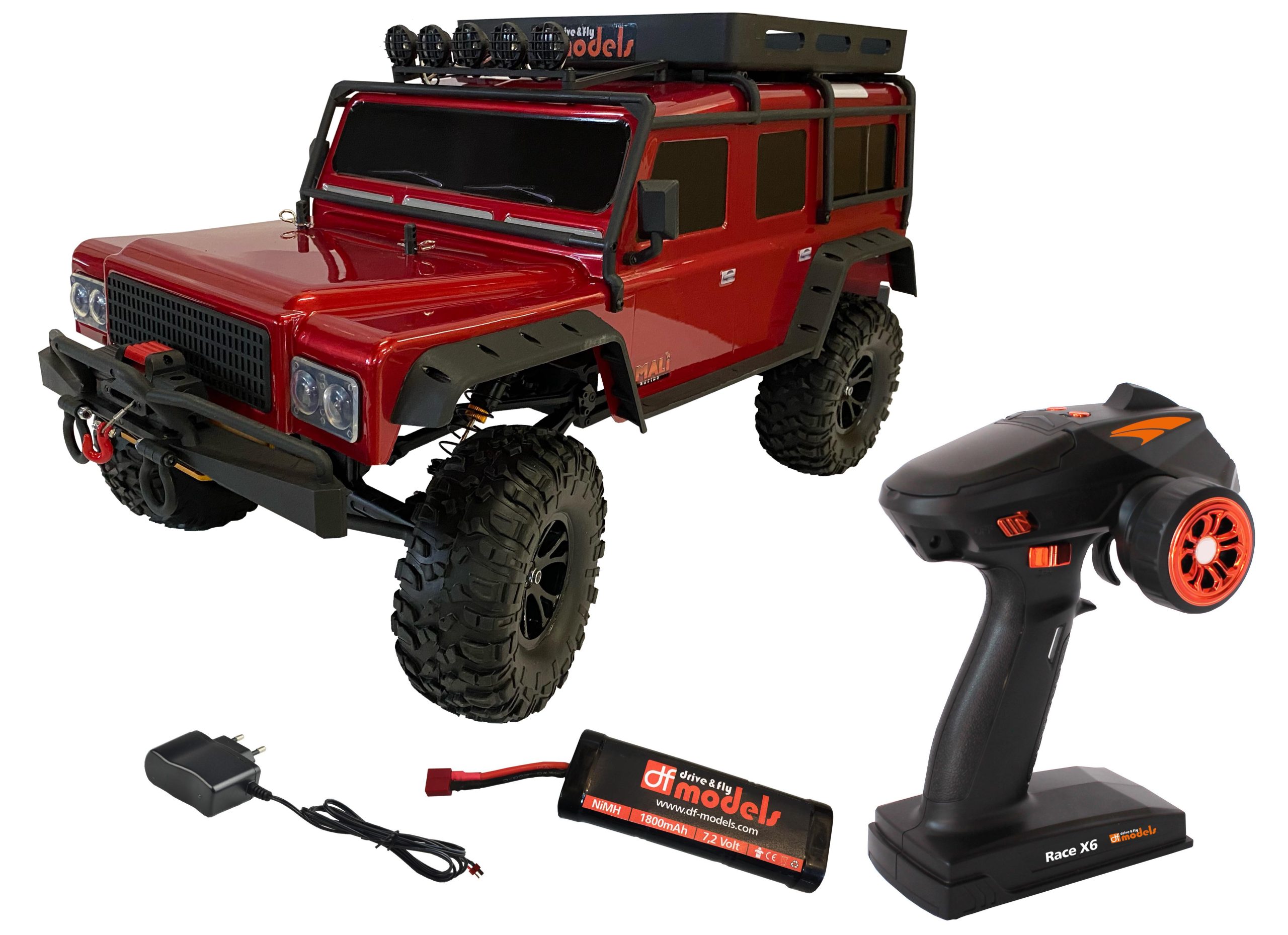 Die 2023-Edition ist mit einem speziellen, LiPo-tauglichen, Crawler Regler sowie einem Spezial-Crawler-Motor ausgestattet. Die Starrachsen mit Metall-Differentialsperren trotzen jedem Gelände und lassen die unmöglichsten Fahrmanöver im Gelände zu. Die robusten Alu-Karosserieaufnahmen, die nun zusätzlich mit Alu-Profilen verstärkt wurden, verleihen dem Modell zusätzliche Steifigkeit. Öldruckstoßdämpfer mit Aluminiumteilen geben dem Modell die richtige Federung. Das per Fernsteuerung schaltbare 2-Gang-Getriebe lässt zügiges Fahren oder sehr langsames Crawlen zu. Die maximale Spitzengeschwindigkeit ist zudem per Dual-Rate an der Fernsteuerung von 0 – 100 % stufenlos einstellbar. Ein Metallgetriebe-Lenkservo steuert Ihr Modell immer präzise wohin Sie wollen. Ebenfalls über die 5-Kanal-Fernsteuerung schaltbar ist die bereits eingebaute NEUE LED-Beleuchtung mit Blinkern, Bremslicht usw. Die im Sondermodell verbaute Seilwinde mit Stahlseil kann ebenfalls per Fernsteuerung bedient werden (Vor-/ Rückwärts). Viele Zubehörteile (optional erhältlich) wie z. B. eine Allradlenkung lassen viel Spielraum, um das Modell zu individualisieren und zu tunen. Das Modell ist Ready To Run und wird mit einer 5-Kanal 2,4 GHz Fernsteuerung, NiMH-Akku und Steckernetzlader geliefert. Eine Fahrzeit von über 60 Minuten ist mit dem DF-4J möglich.