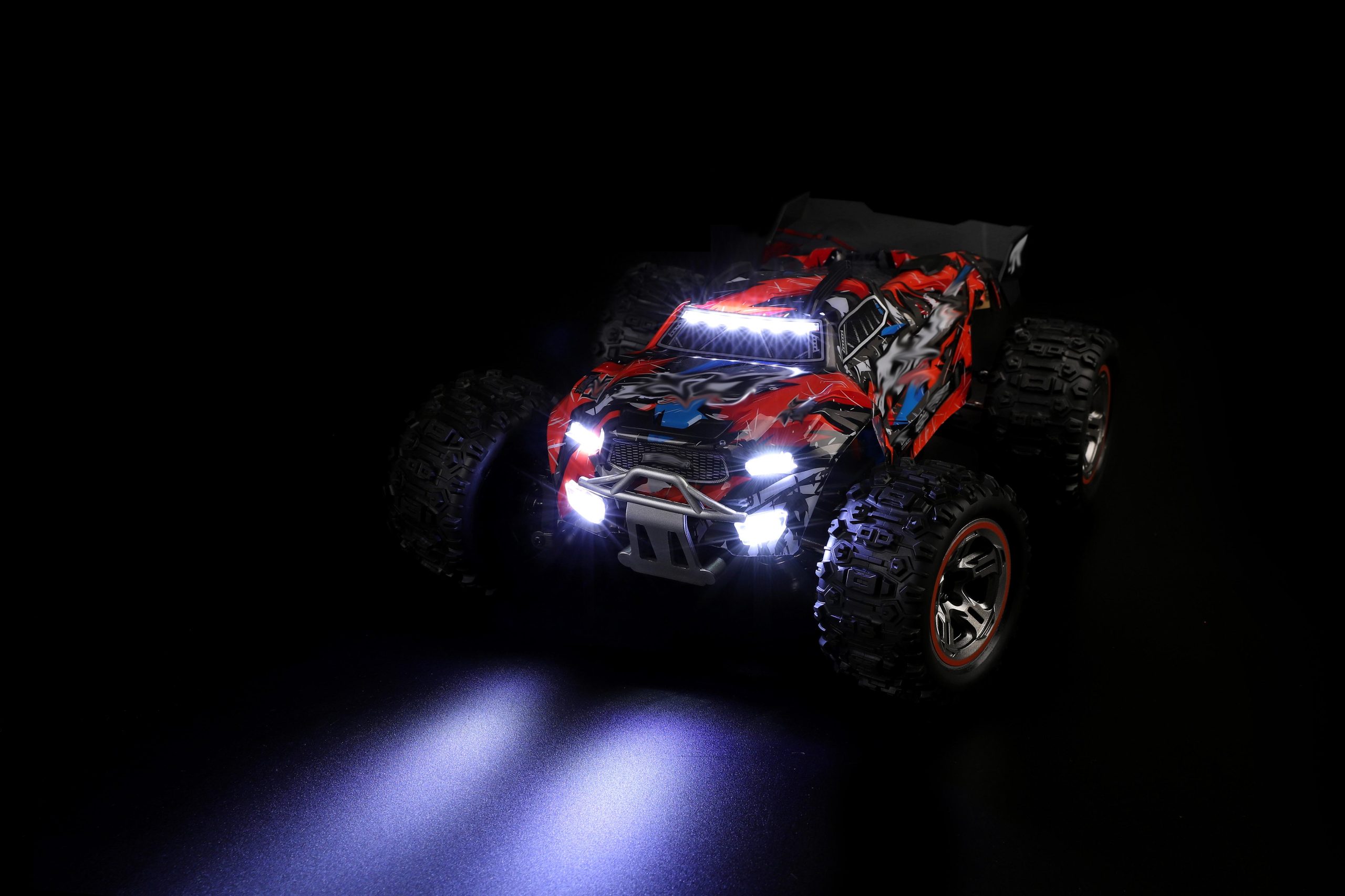 Der DF-06 PRO Mini 1:18 Brushless Truck aus der Advanced Line von DF Models ist ein leistungsstarkes Modell im Maßstab 1:18, das bereit ist für actiongeladene Abenteuer. Mit seinem 5000kv Brushless Power-Motor und der leistungsstarken Reglereinheit ist dieser 4WD Truck darauf ausgelegt, atemberaubende Geschwindigkeiten von bis zu 60 km/h zu erreichen. Sein 7,4 Volt LiPo-Akku liefert die erforderliche Power für eine kraftvolle Performance.