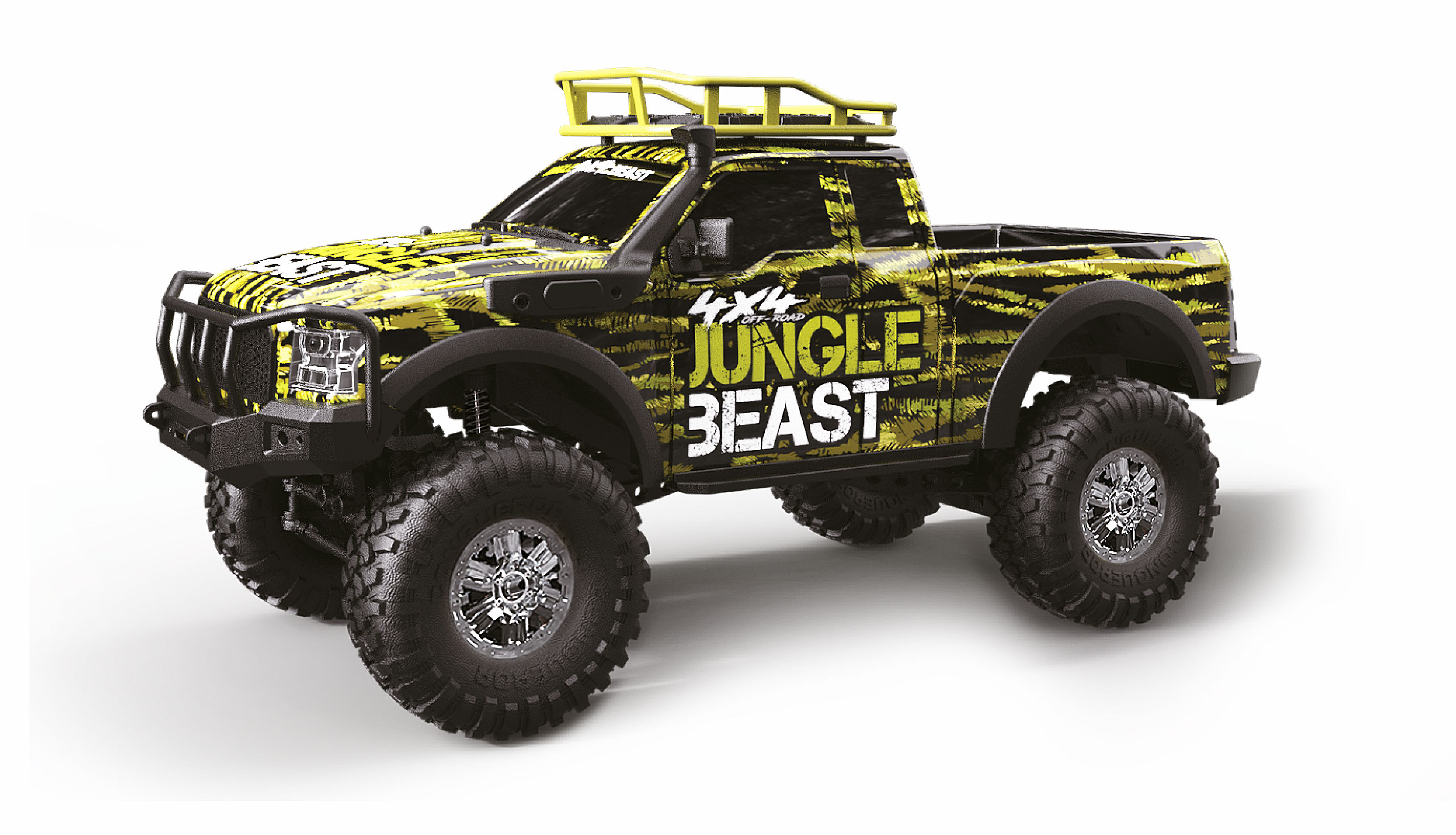 Coole Cross Country Optik trifft auf modernste Features. Dank kräftigem Motor, dem 4WD Allradantrieb und den Oversized-Reifen findet dieser Climbing SUV im Maßstab 1:10 immer seinen Weg aus der Wildnis. Bei Dämmerung hilft zusätzlich die helle LED-Beleuchtung, um jederzeit die Orientierung im Gelände zu wahren. Während die schwarz getönten Scheiben perfekt zum wilden Aussehen passen, lassen sich auf dem Dachgepäckträger dieses Crawlers zudem kleinere Dinge transportieren – ein großes Vergnügen für jeden RC-Piloten. Der Kunststoffrahmen des Fahrzeugs wurde so konzipiert, dass er wirkungsvoll Kollisionen abfedert. Kugellager aus Metall, eine vor Spritzwasser geschützte Elektronik und Stoßdämpfer mit echten Metallfedern unterstreichen den wertigen Eindruck des Modells. Durch eine gut in der Hand liegende und feinfühlige Pistolenfernsteuerung mit moderner 2,4GHz Funktechnologie ist gleichzeitig für eine störungssichere Fahrt gesorgt und auch der parallele Einsatz mehrerer Fahrzeuge aus dieser Serie kein Problem. Der Dirt Climbing SUV wird RTR (Ready-to-Run) ausgeliefert, d.h. alle für den Betrieb benötigten Komponenten – selbst die Batterien für die Fernsteuerung – sind bereits im Lieferumfang enthalten.