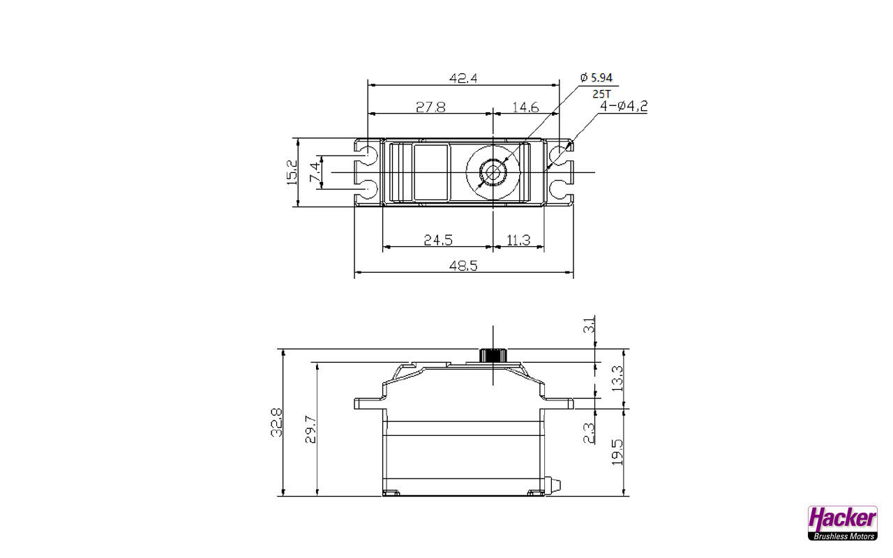 - Stellkraft 8,0 Kg-cm @ 7,4V