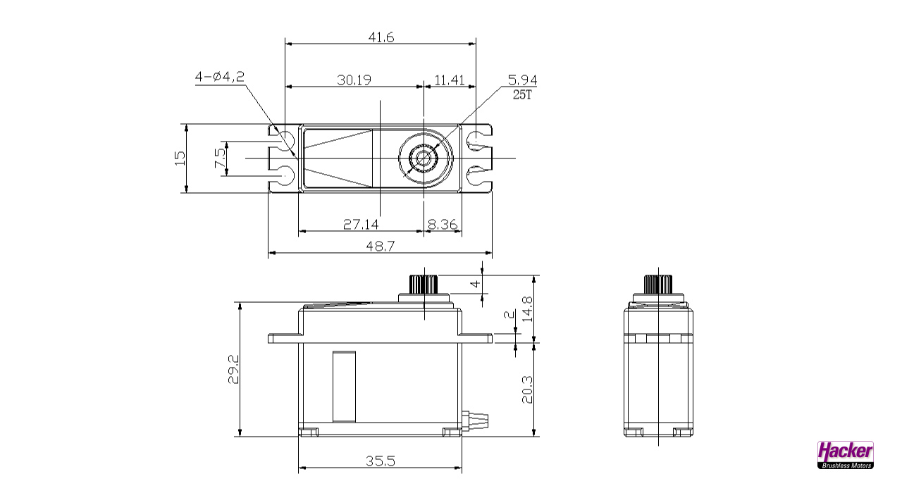 Midiservo mit Vollaluminiumgehäuse und Metallgetriebe.