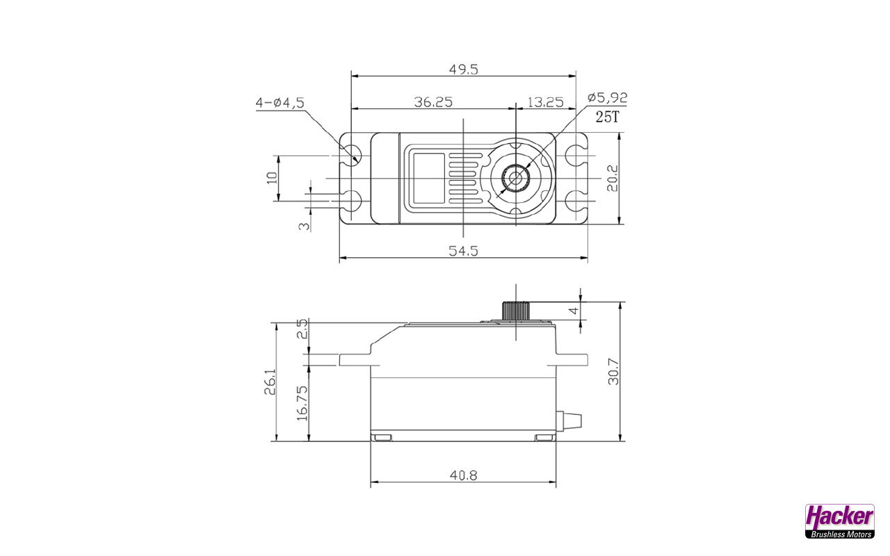 Leistungsstarkes digitales low profile Servo für Flugmodelle bis 20,0Kg, Helis Größe 500/600/700/800, RC-Boote, 1/10, 1/8 Touring, Drift Car, Roboter, etc.