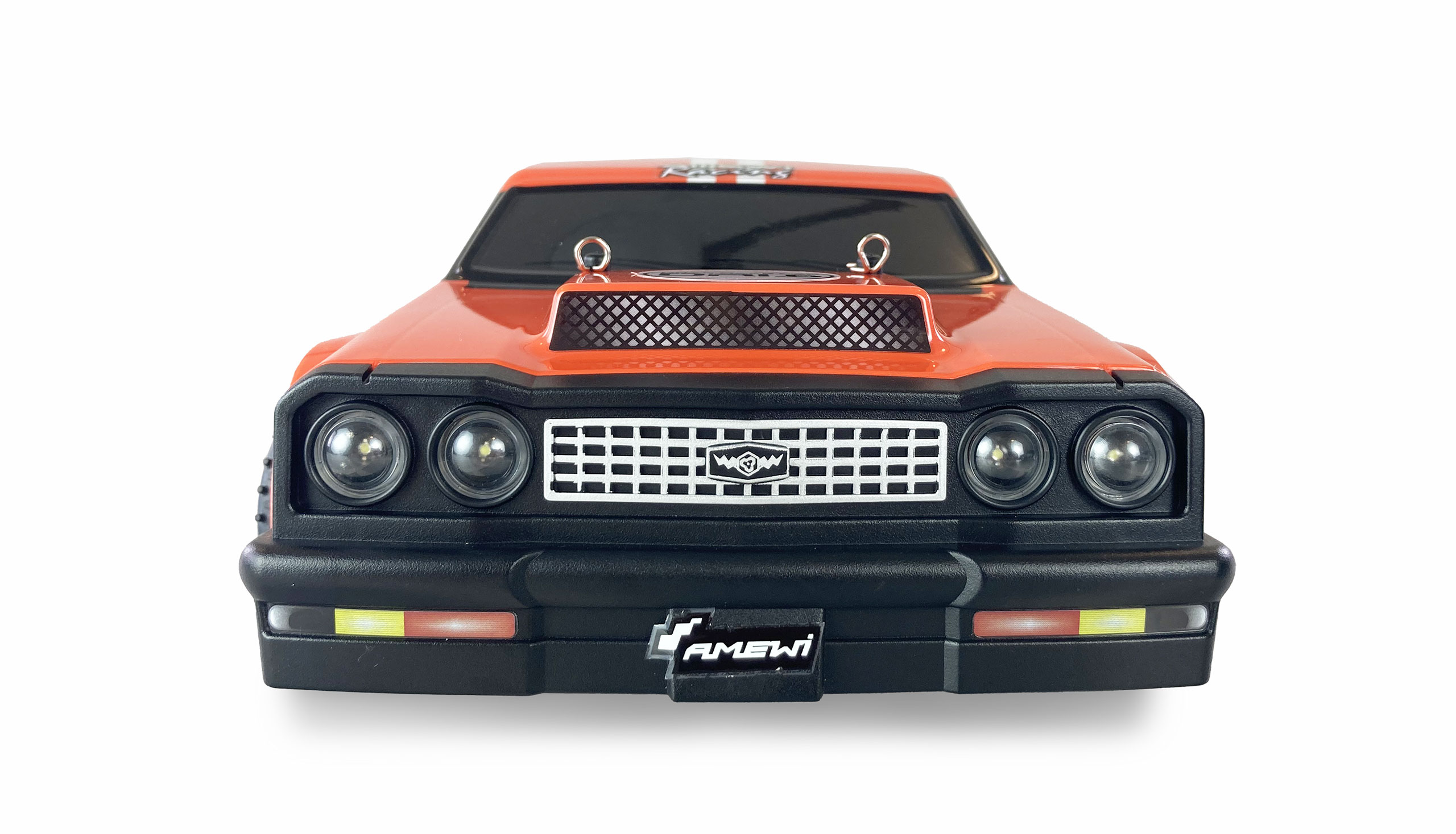 Cooles Drag Racing Fahrzeug im Maßstab 1:16 als RTR-Version (Ready-to-Run) mit Akku, Ladekabel, 2,4GHz Sender und eingebautem Fahrstabilitätssystem – das Modell wird mit einem starken 7,4V Li-Ion Akku 1200mAh und einem 390er High Speed Brushed-Motor ausgeliefert. Die erreichbare Geschwindigkeit liegt damit bei über 30km/h. Der eingebaute Gyro sorgt für einen guten Geradeauslauf und lenkt aus den Kurven unterstützend mit, um das Modell zu stabilisieren. So wird der Eindruck vermittelt, es würde ein wesentlich größeres und schwereres Fahrzeug gefahren. Der Antriebsstrang und die Differentiale sind aus Metall und das Modell verfügt über eine LED-Beleuchtung für Rennen auch bei Dämmerung.