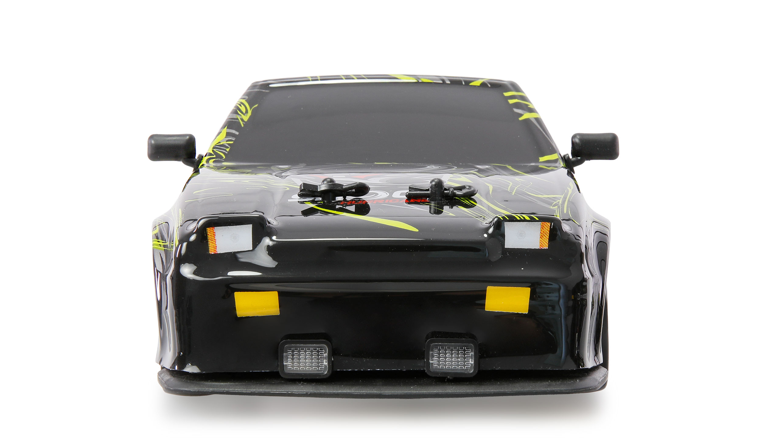 Das Fahrzeug ist mit einem 4WD-Allradantrieb ausgestattet, der für optimale Traktion auf verschiedenen Untergründen sorgt. Durch den einfachen Reifenwechsel kann das Modell von Driftreifen mit Kunststoffauflage auf Zusatzreifen mit Gummiprofil umgerüstet werden, wodurch sich das Fahrzeug im Handumdrehen von einem Drifter zu einem schnellen Rennauto verwandelt. Die Karosserie besteht aus robustem ABS-Kunststoff und wird durch integrierte LED-Beleuchtung eindrucksvoll in Szene gesetzt.
