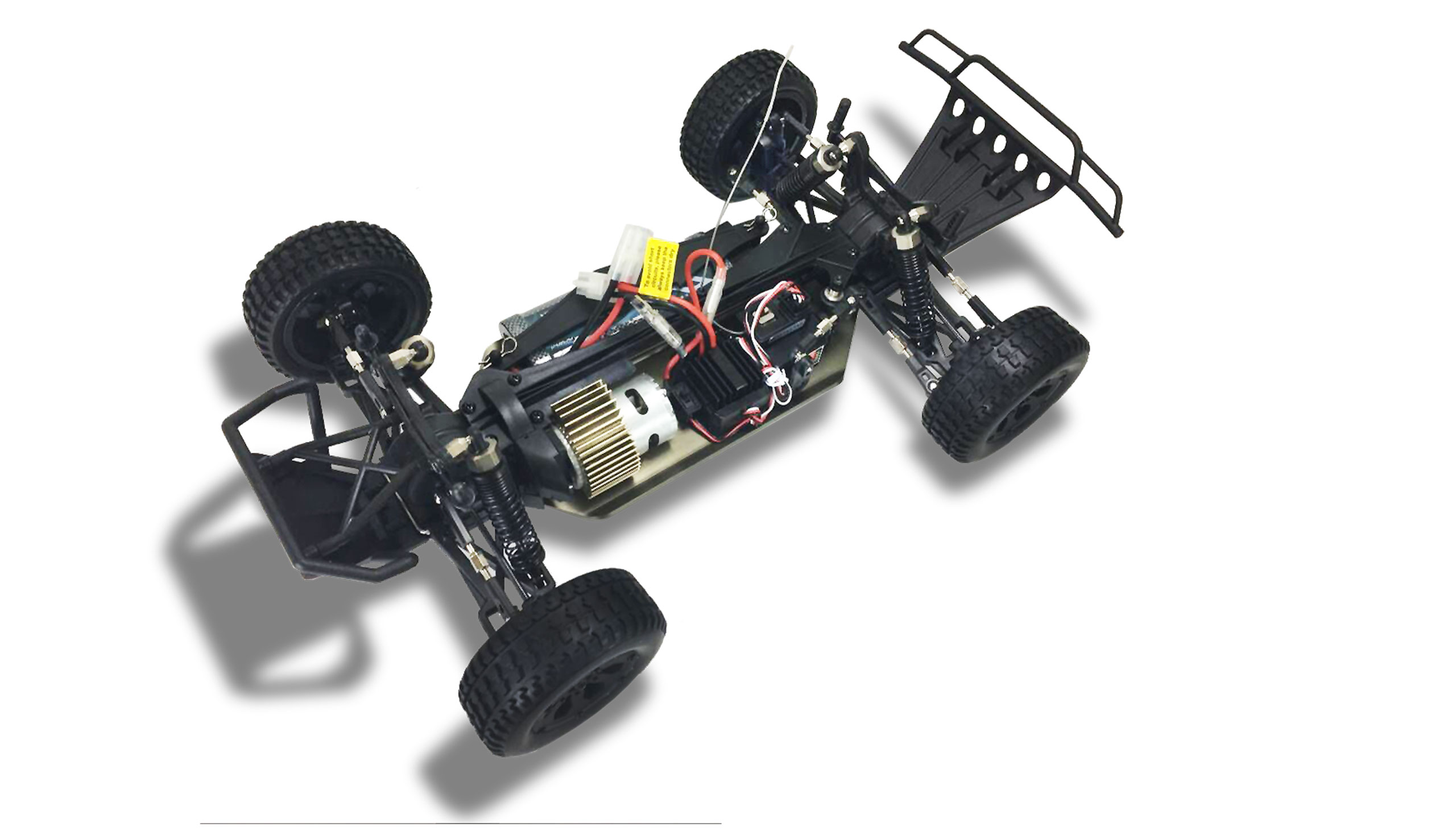 Dune Breaker, die ultimative Weiterentwicklung des bewährten Breaker!Gegenüber dem Breaker wurde die Haltbarkeit nochmal gesteigert, in dem wir das Chassis durch ein hochwertiges Aluminium Chassis ersetzt haben! Der Dune Breaker verfügt über ein voll-einstellbares Chassis, die Öldruckstoßdämpfer vorne & hinten sind mit einer Aufhängung aus Aluminium und dank der mitgelieferten Clips einstellbar. Dank des 4WD Allradantriebes kämpft sich der Dune Breaker durch nahezu jedes Gelände und dank der wasserdichten Elektronik kann ihn auch keine Pfütze stoppen.Features:Hochwertiges Aluminium ChassisAluminium Top-DeckÖldruck-Stoßdämpfer mit Aluminium AufhängungBrushed Motor 540 23THobbywing 40A Fahrtenregler wasserdichtStahl-Differentiale vorne & hintenMit 2-Kanal 2,4GHz FernsteuerungTechnische Daten:Abmessungen (LxBxH): 440x255x162mmGewicht: 1,9kg (ohne Akku)Radstand: 265mmBodenfreiheit: 26mmÜbersetzungsverhältnis: 10,3:1Akku: 7,2V 2000mAh NiMh Stick-PackTechnische Daten Regler:Dauerlast: 40AKurzzeitlast: 180A Vorwärts / 90A RückwärtsFunktionen: Vorwärts/Rückwärts/BremseBEC Ausgang: 5V / 2ABetriebsspannung: 7,2V – 7,4VMotorlimit: 12T 540 oder 550 @ 2S LiPoAkku-Anschluß: TamiyaAbmessungen: ca. 46,5x34x28,5mmGewicht: 65gWasserdicht: jaTechnische Daten Motor:Wicklungen: 23Strom: 15ASpannung: 7,2V – 7,4VBaugröße: 540Welle: 9,6mm / Ø. 3,17mmAbmessungen: Länge: 54mm / Ø. 36,0mmTechnische Daten Servo SP6001:Stellkraft: 6,0kg @ 6VStellzeit: 0,18 Sek / @ 6VGetriebe: KunststoffZahnkranz: 25 ZähneStecksystem: JRAbmessungen: 40,1×20,4x38mmSpannung: 4,8V – 6,6V Technische Daten Sender GT-2:Kanäle: 2Reversefunktion: jaTrimmung Gas/Bremse: jaTrimmung Lenkung: jaDual Rate Lenkung: jaDual Rate Gas/Bremse: neinBenötigte Batterien: 8x AA MignonEmpfänger: 3 Kanal (wasserdicht)Lieferumfang:RC Sand Buggy Dune Breaker2,4GHz PistolenfernbedienungNiMH AkkupackLadegerätDämpfer ClipsAusführliches Anleitung mit Bildern