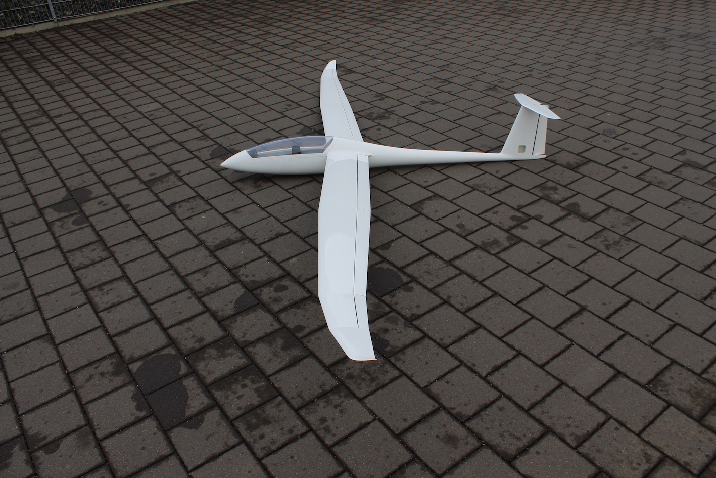 Das Modell wurde am CAD von einem Aerodynamiker konstruiert, dementsprechend ist die Flächengeometrie und das Flächenprofil individuell aerodynamisch berechnet worden und stellt das Optimum für diese Größe und dieses Gewicht dar. Der Rumpf ist in Voll-Composite Bauweise aus GFK mit Kohlefaser Verstärkungen aufgebaut , die Flächensteckung ist ein Rechteck-Kohlefaser Verbinder. Die Tragflächen sind in aufwändiger Voll-CFK-Composite-Sandwich Schalenbauweise hergestellt und für eine perfekte Oberfläche wird als erste Decklage ein feines 50g/qm Glasgewebe verwendet . Alle Teile sind in der Form weiß mit 2K Lack lackiert.