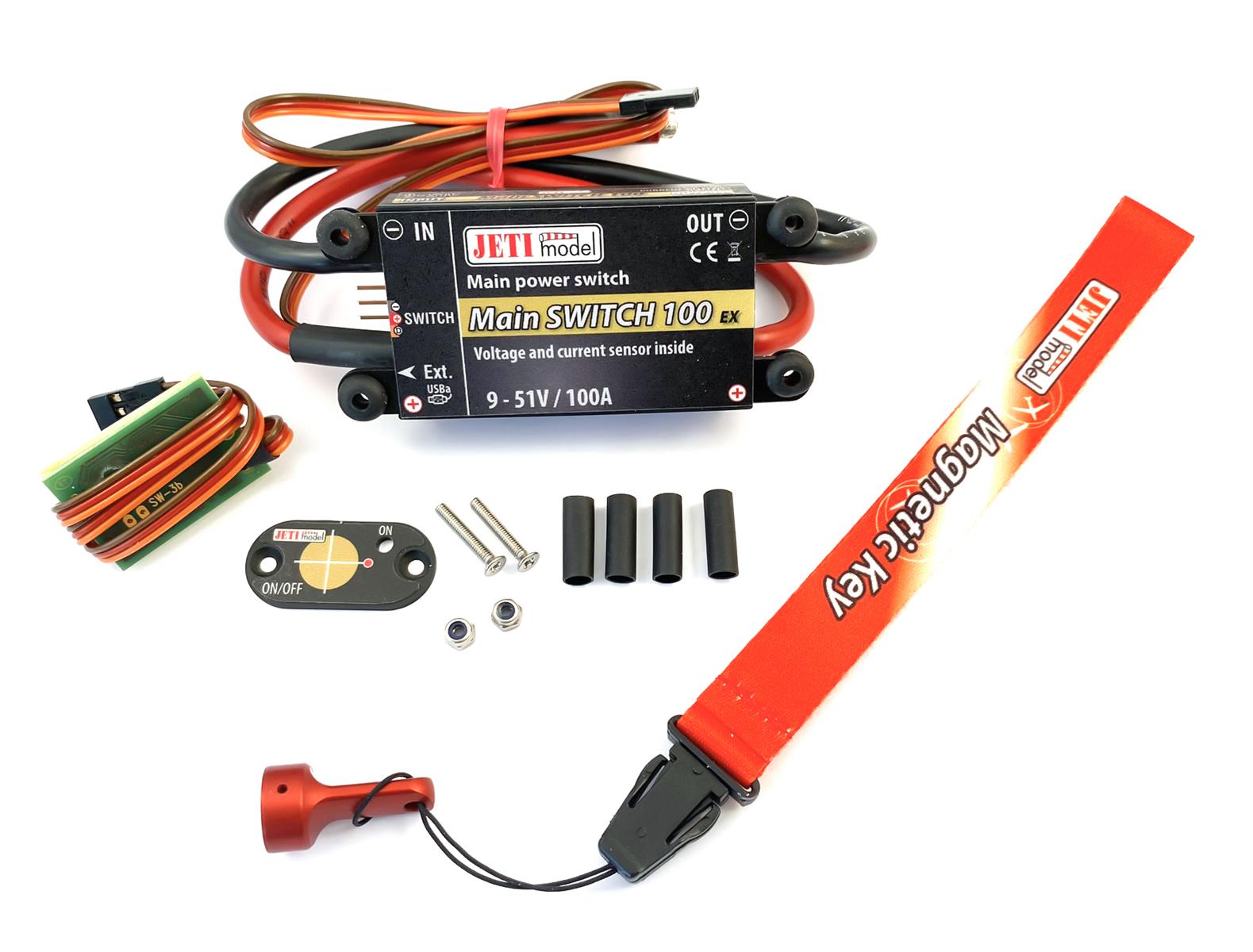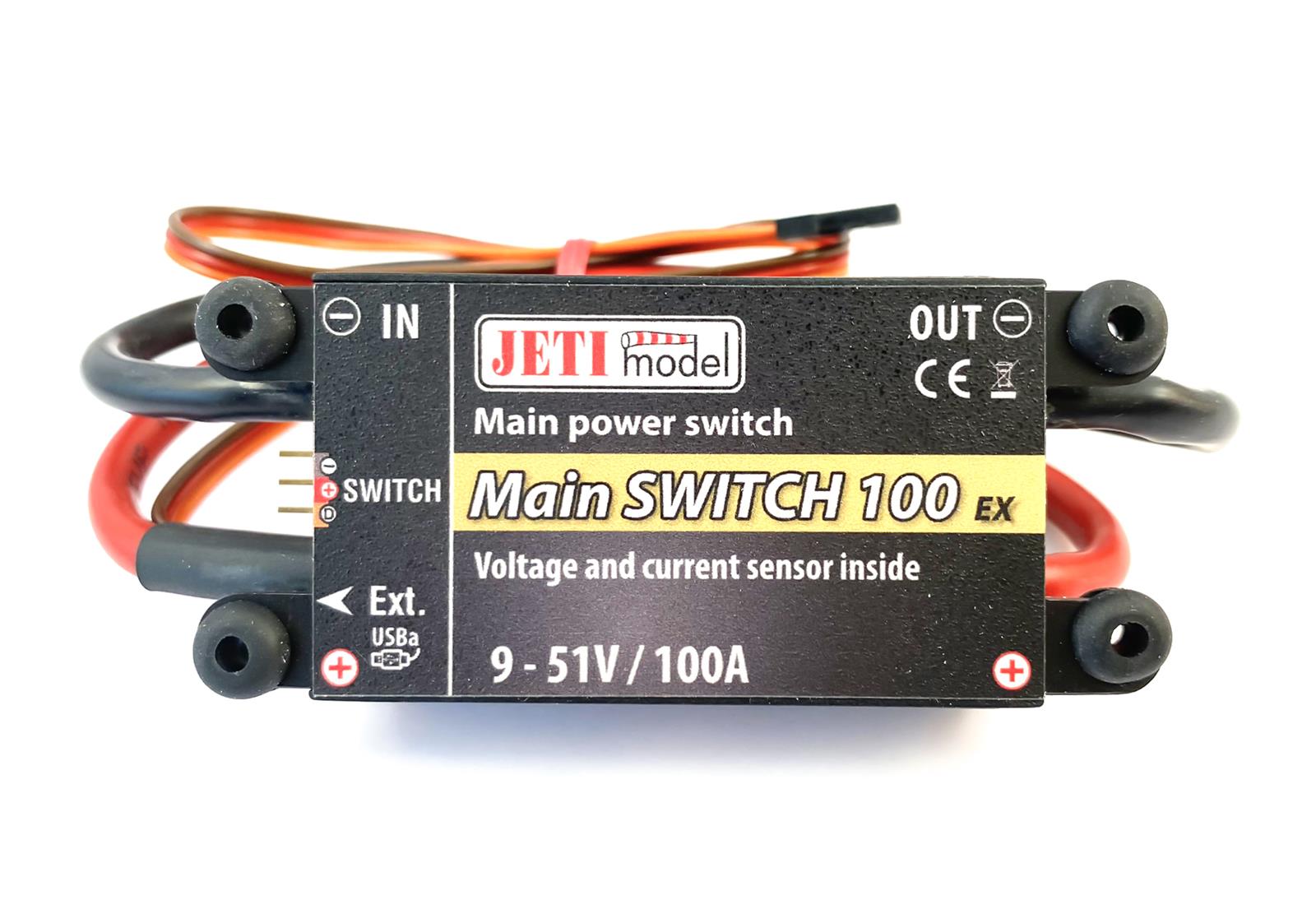 Der RC-Switch kann mit den JETI Duplex Sendern drahtlos betätigt werden. Obwohl der Main Switch vorrangig für den Einsatz als Hauptschalter im RC-Modell konstruiert wurde, lässt er sich auch für viele andere Anwendungen zur Schaltung einer Stromversorgung nutzen. Der Main Switch misst die Spannung und den fliessenden Strom aus dem Antriebsakku und kann daher diese Werte und die verbrauchte Akkukapazität per EX Telemetrie an das JETI Duplex System weitergeben. Ausserdem wird die Temperatur des Main Switch gemessen und angezeigt. Alarme können für die maximale Kapazität, Strom und Temperatur sowie für die minimale Spannung gesetzt werden.