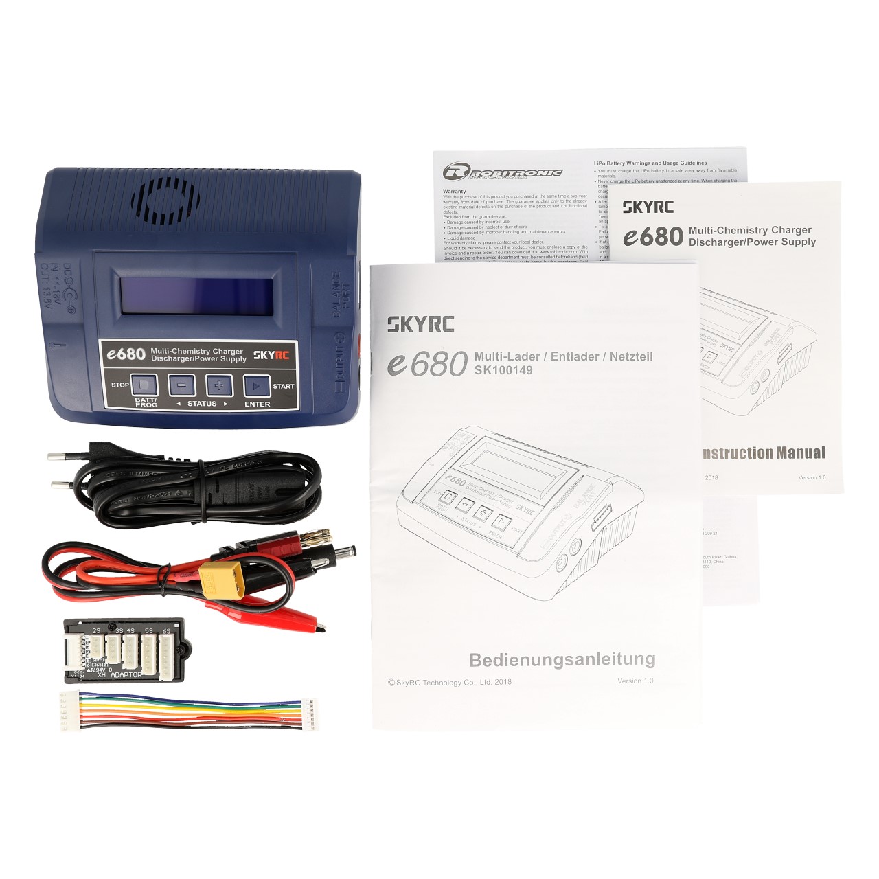 Allen gängigen Akkutypen wie LiPo/LiIon/LiFe/LiHV/NiMH/NICd/Pb und der Systemakku des DJI Mavic werden durch das Mikroprozessor gesteuerte SkyRC e680 unterstützt.