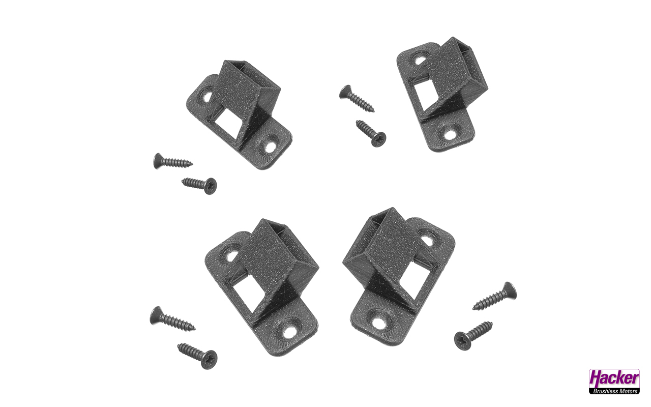 4 Einbaurahmen für MPX-Stecker 6-polig 30° liegend und 8 Befestigungschrauben.