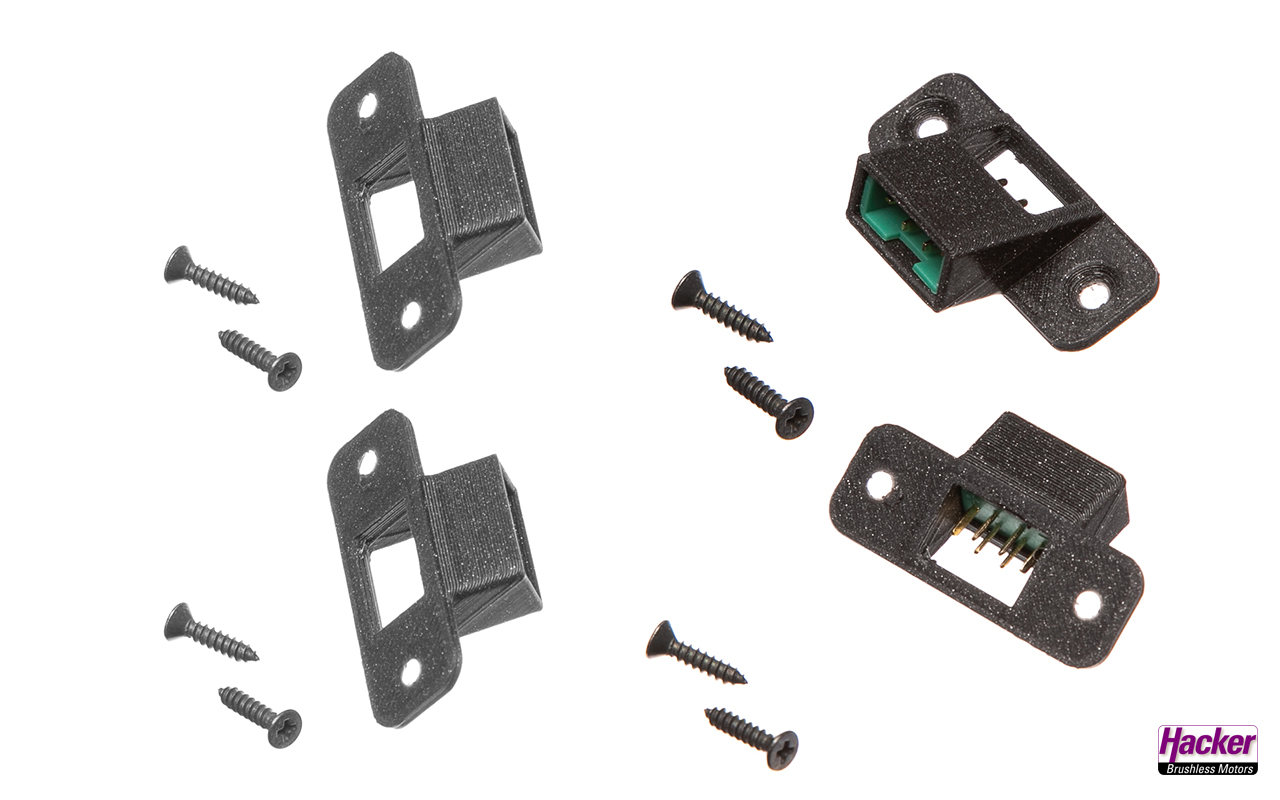Ideal um z.B. eine sichere und fixe Steckverbindung für Empfängerakkus oder Servos im Modell zu erstellen. Der Stecker befindet im 30Grad-Winkel zur Bodenplatte und das Aus- und Einstecken ist problemlos mit einer Hand möglich.