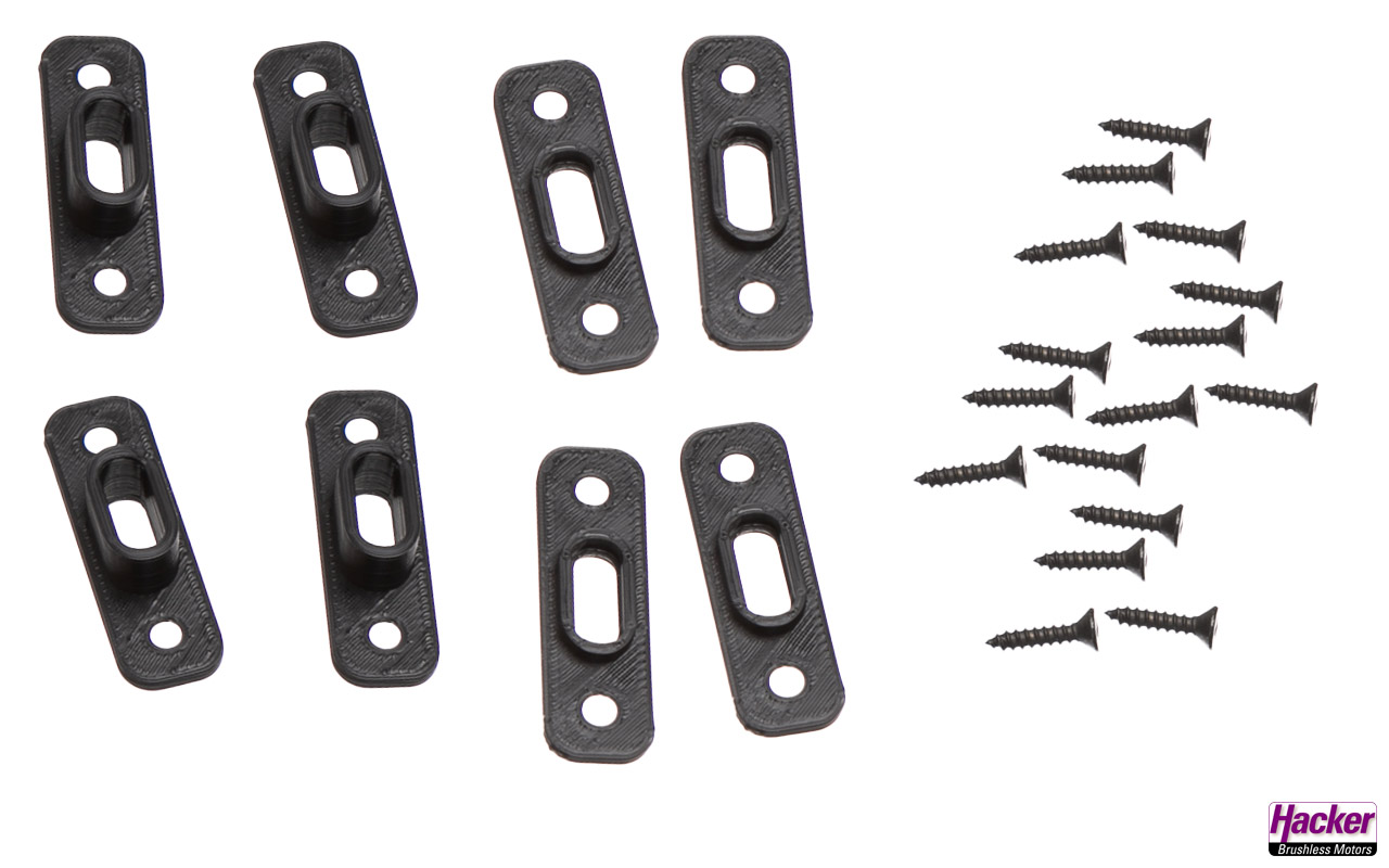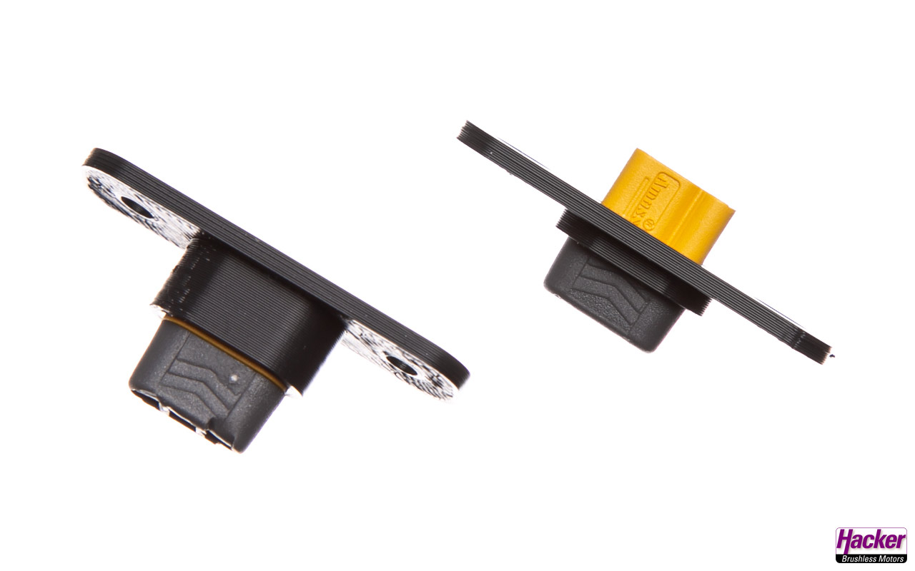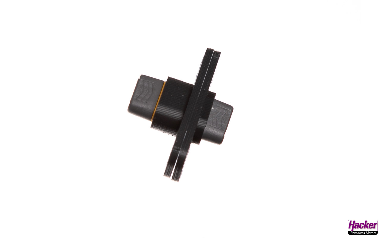 Kunststoff-Einbaurahmen für MR30-Stecker und -Buchsen. Die Einbaurahmen können mit den mitgelieferten Schrauben im Modell fixiert werden.