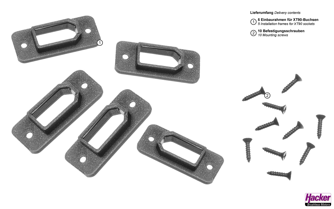 5 Einbaurahmen für XT90-Buchsen und 10 Befestigungschrauben.