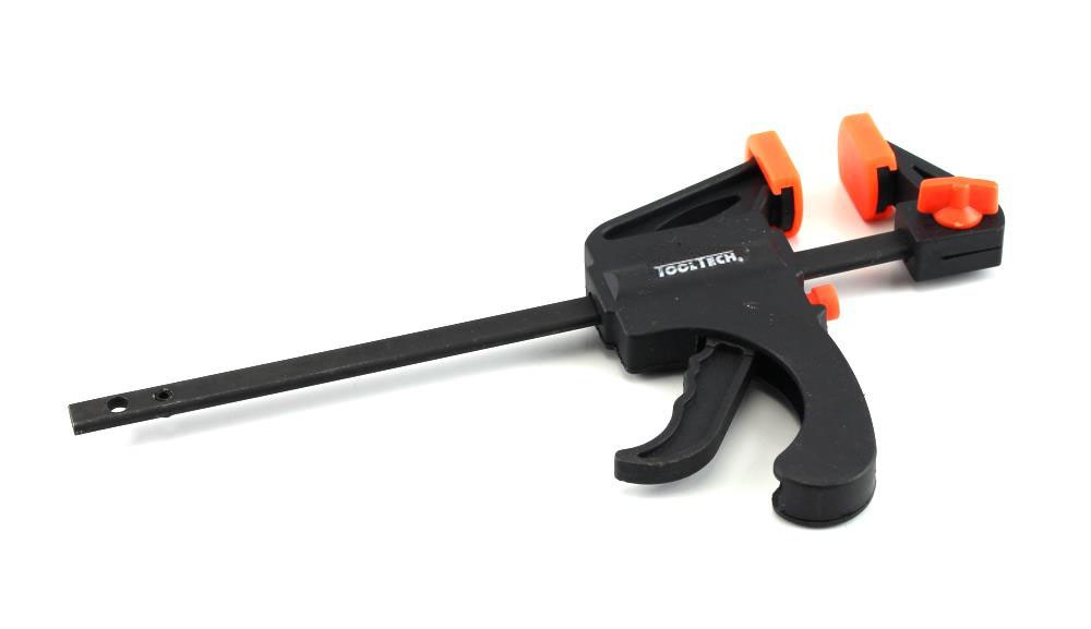 Universalspannwerkzeug zum Halten von Werkstücken zur Bearbeitung oder Verbindung mit anderen Teilen. Die Klemme liegt gut in der Hand und lässt sich dank des ergonomisch geformten Kunststoffgriffs angenehm handhaben