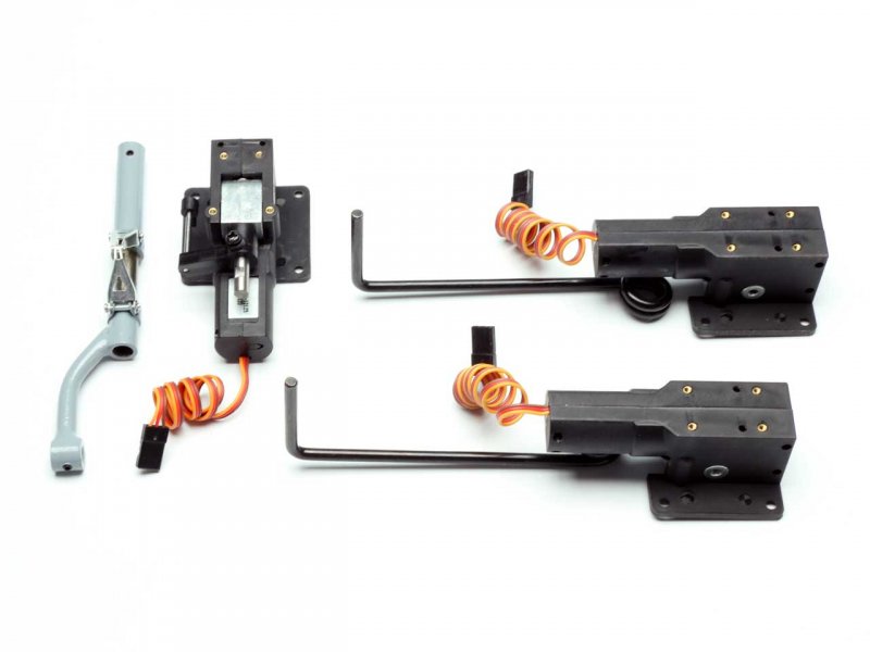Elektrisches 3-tlg. Einziehfahrwerk inkl. Scale-Federbein, passend z.B. für folgende Flugmodelle: