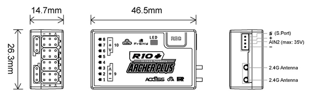 Die Empfänger der Archer Plus-Serie enthalten einige neue Funktionen. Erstens kann eine verbesserte Anti-HF-Interferenz-Fähigkeit eine solidere HF-Leistung bieten, und zwar zusätzlich zur bestehenden Anti-Interferenz-Leistung beim Zündvorgang. Diese Plus-Serie verfügt außerdem über die beiden Modi ACCESS und ACCST D16, bei denen das HF-Protokoll während des Bindevorgangs am Funkgerät automatisch abgeglichen wird. Mit der Black-Box-Funktion können einige grundlegende Flugdaten (wie Spannung und Signal) problemlos gespeichert werden.