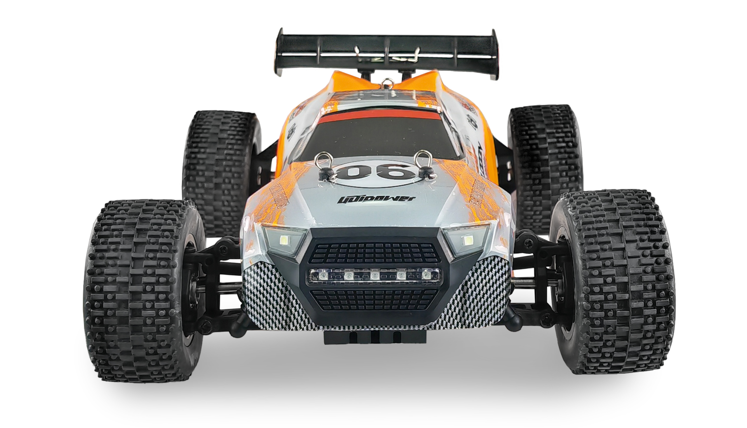 Durch die Verwendung hochwertiger Metall-Differentiale und Kardanwellen profitierst du von einer optimierten Übertragung der Kraft auf die Räder. Dadurch wird nicht nur die Power gesteigert, sondern gleichzeitig der Verschleiß der Komponenten minimiert. Du kannst dich also auf langanhaltenden Fahrspaß verlassen. Die stoßdämpfende Aluminium-Öldruck-Federungen sorgen zusätzlich für unschlagbare Stabilität während der Fahrt. Du hast die Möglichkeit, das Fahrzeug individuell auf verschiedene Geländebedingungen abzustimmen. Egal ob du über holprige Pisten fährst oder atemberaubende Sprünge machst – dieser Truggy meistert alles mit Leichtigkeit. Selbst bei hohen Geschwindigkeiten und in scharfen Kurven gewährleistet das stufenlos einstellbare ESP eine sichere Spurführung des Modells.